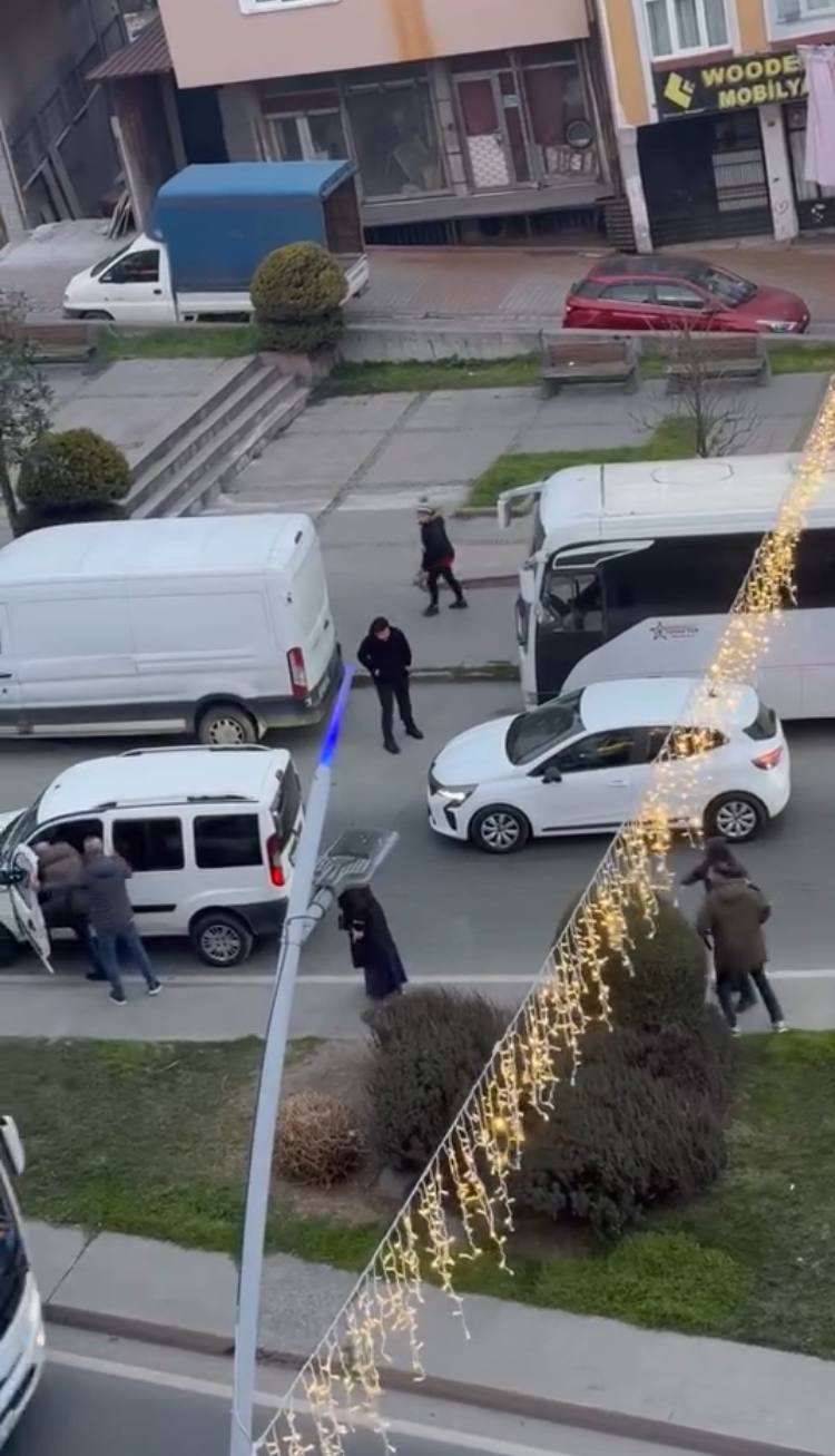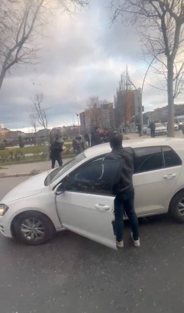 Çevredeki vatandaşların araya girmeye çalıştığı kavgada, taraflardan biri kemerini çıkararak diğer kişiye saldırdı. Diğer taraf ise karşısındakine yumrukla karşılık verdi. Araya giren çevredekiler tarafları ayırmaya çalışırken, araya giren bir kadının "Vurma" diye bağırdığı anlar cep telefonu kamerasına yansıdı. Uzun süre cadde ortasında devam eden kavgaya tepki gösteren diğer sürücüler ise korna çaldı.