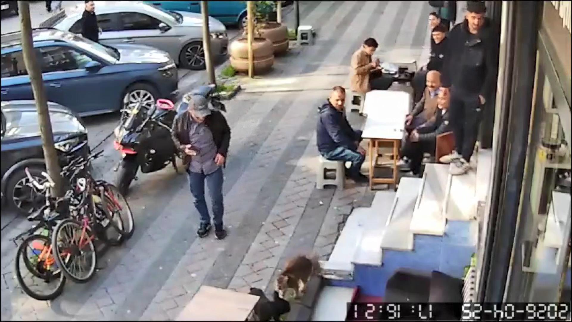 Bu sırada kedi peşine takıldığı müşteriyi kaldırımdan yola kadar kovaladı. Çevredekilerin bakışları arasında yola doğru kaçan müşteri daha sonra kuaför salonuna geri döndü. Kedi ise merdivenlere kadar müşterinin peşinden bir kez daha koştu daha sonra sokağa döndü.