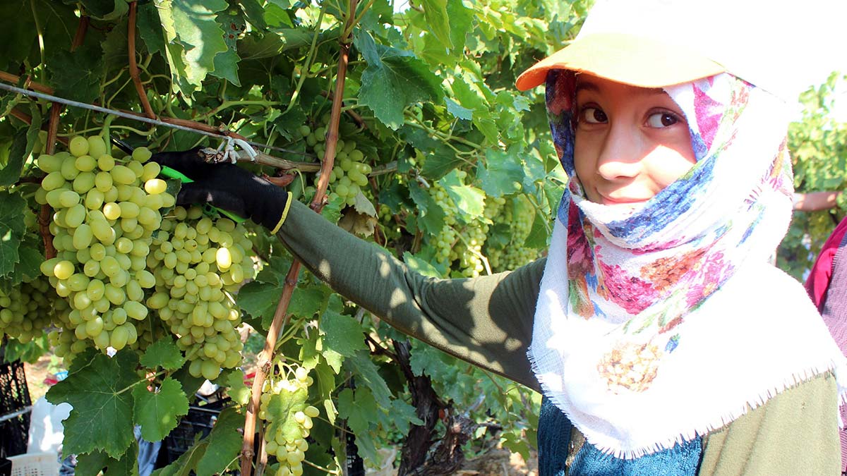 Manisa’nın Alaşehir ilçesinde yetiştirilen çekirdeksiz Sultaniye üzümde ilk hasat yapılırken, toplanan üzümde ihracata başlandı.