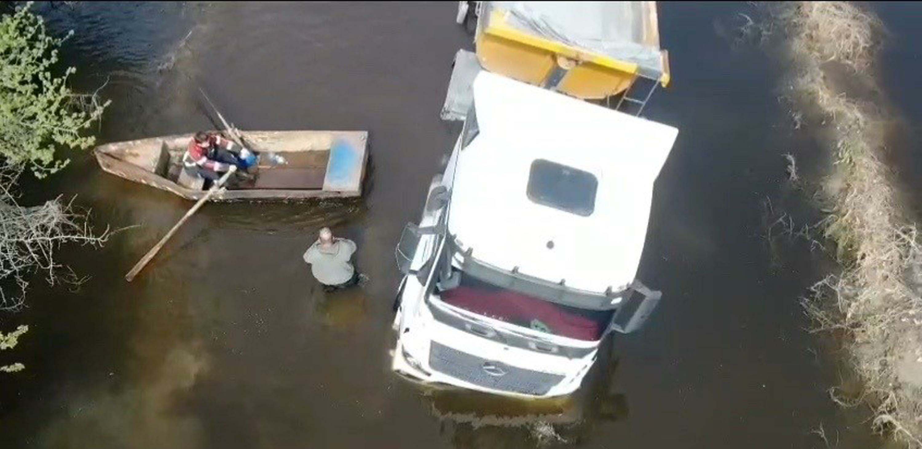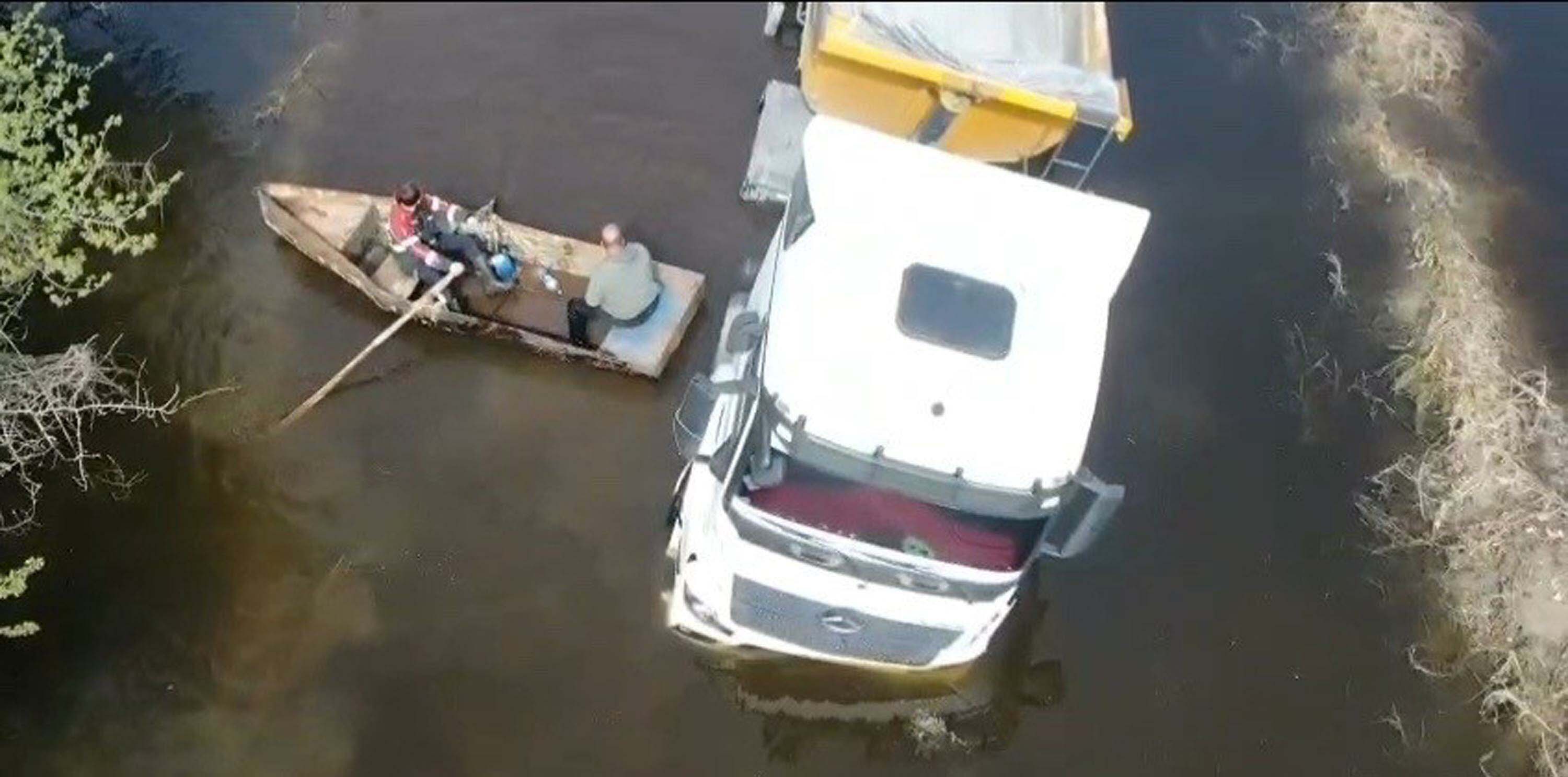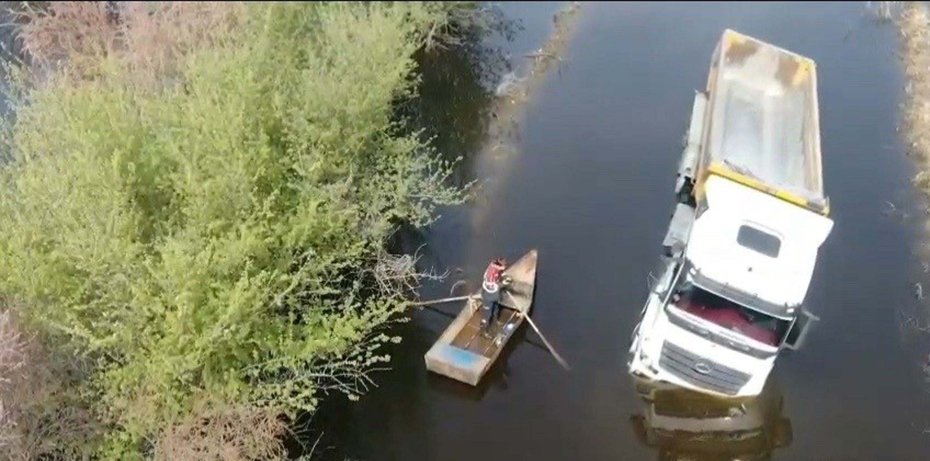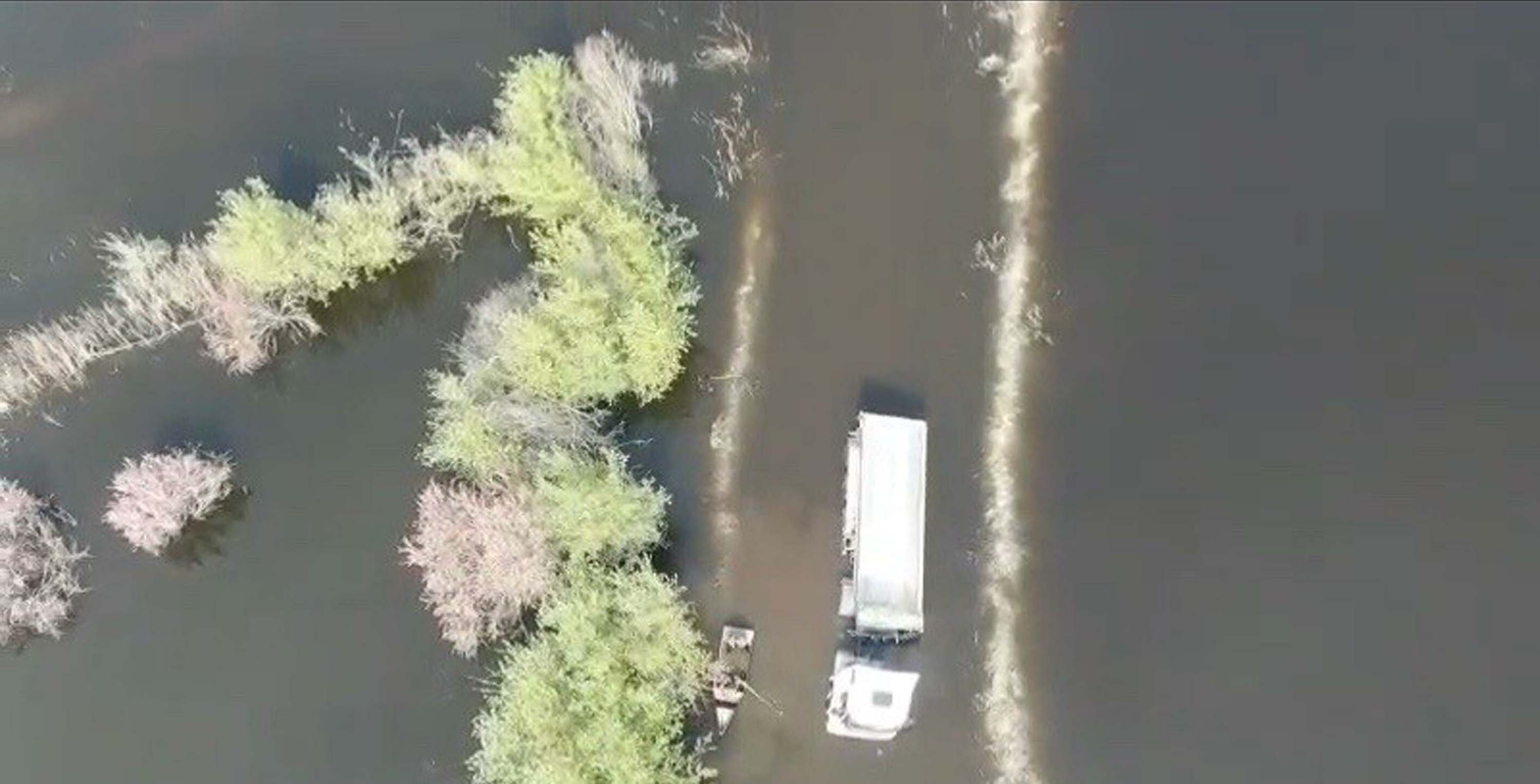 İhbarla bölgeye Aydın Büyükşehir Belediyesi İtfaiye ekipleri sevk edildi. Taşkın sularının yolu kaplaması nedeniyle kara yolu ile ulaşım sağlayamayan ekipler, sandalla kurtarma çalışması başlattı. Ekipler, şoförü bulunduğu yerden alarak kurtardı. Kurtarma anları dronla görüntülendi.