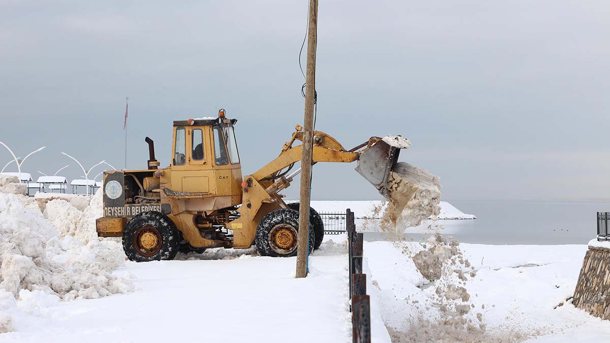 Beyşehir’de geçen hafta sonu etkili olan yağışla birlikte ilçe merkezinde kar kalınlığı 40, yüksek kesimlerde ise 70 santime ulaştı. Belediyle, ilçe merkezinde temizlik çalışması yaptı. İş makineleriyle toplanan karlar, kamyonlara yüklenerek, iklim değişikliği ve bilinçsiz tarımsal sulama nedeniyle kıyıdan yaklaşık 150 metre çekilen Beyşehir Gölü’ne götürülüp, döküldü.