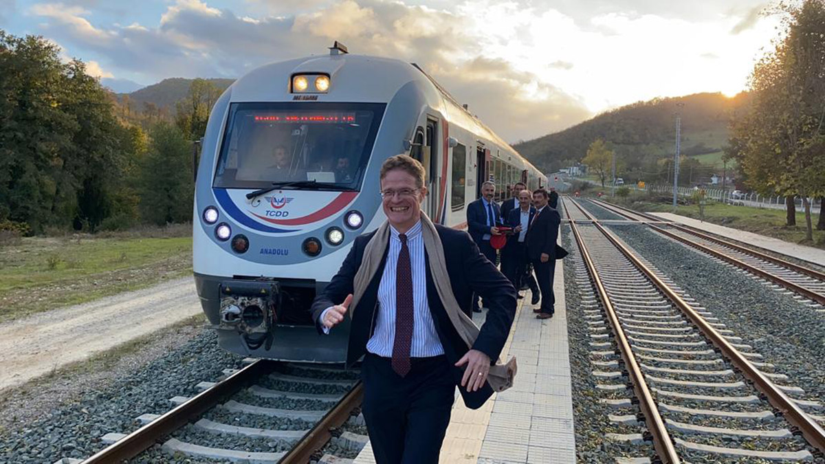Avrupa Birliği olarak Samsun- Sivas Kalın Demir Yolu hattı projenin bir parçası olmaktan çok büyük bir gurur duyduklarını söyleyen Büyükelçi Nikolaus Meyer-Landrut, “Trenler yeşil dönüşüm açısından çok önemli. Çünkü karbon emisyonlarını azaltıyorlar. Çünkü ulaşım sektörü karbon emisyonlarının en fazla arttığı sektör.