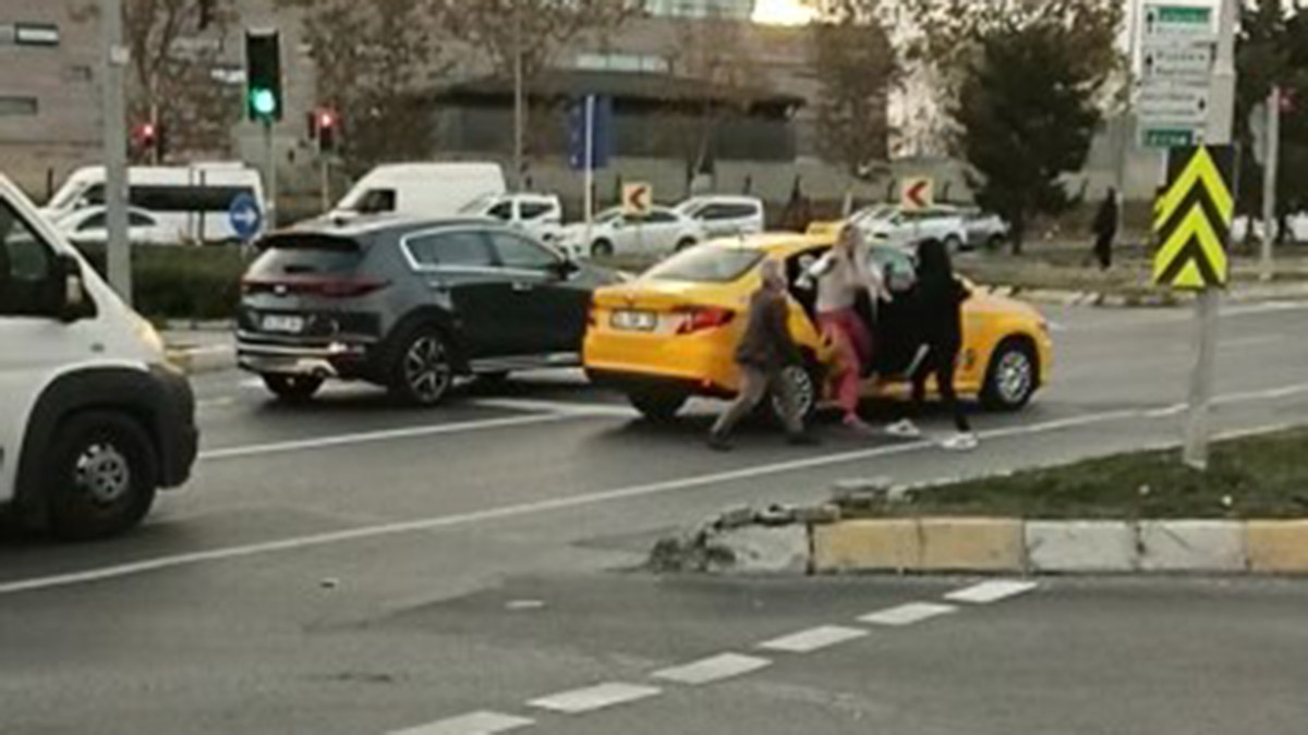 Esenyurt’ta taksi şoförü tartıştığı kadın yolcuyu yol ortasında darbetti. O anlar çevredekiler tarafından görüntülendi.