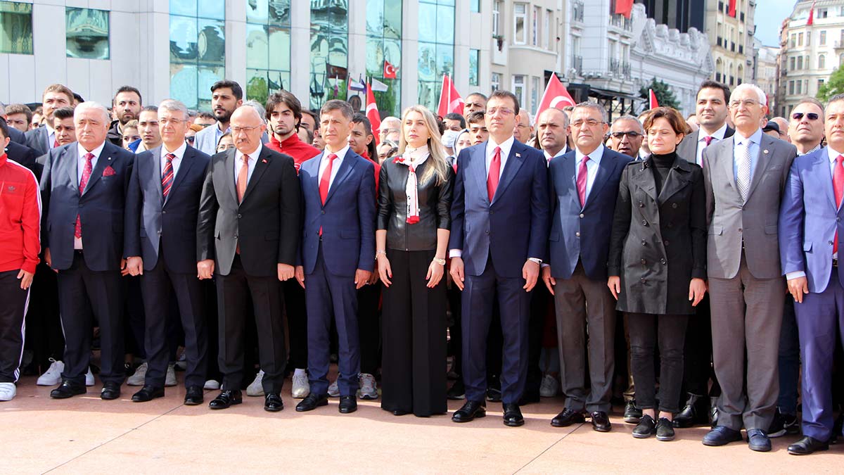 İstanbul Büyükşehir Belediye Başkanı Ekrem İmamoğlu “Atatürk’ü Anma gençlik ve Spor bayramımız kutlu olsun. Taksim Meydanı’ndayız. Şehrimizin siyasi partileri, kamu kurumlarıyla birlikte bir arada bayramımızın ilk adımını attık ve çelenk sunumunu Atamızın önünde hep beraber gerçekleştirdik” dedi.