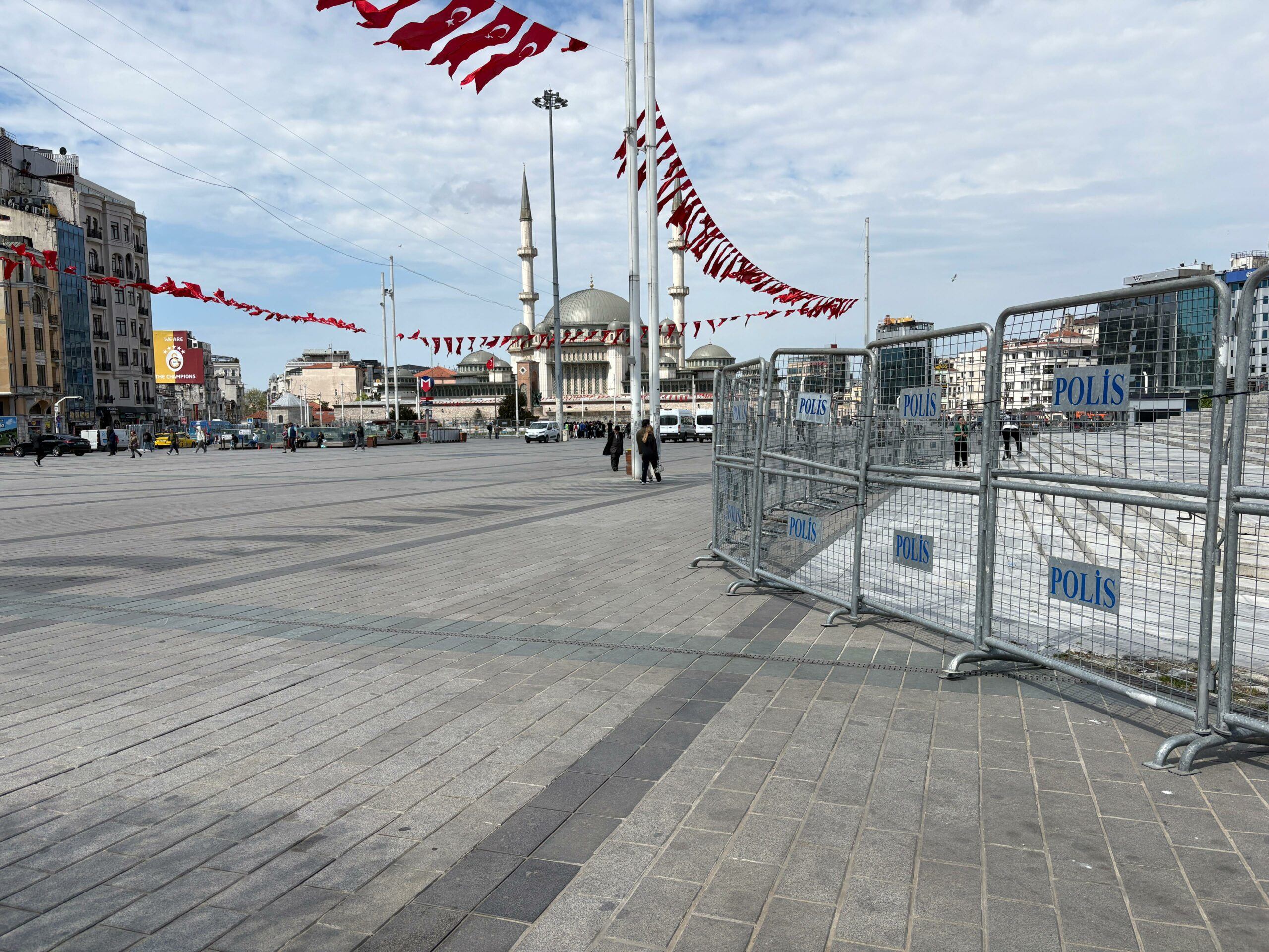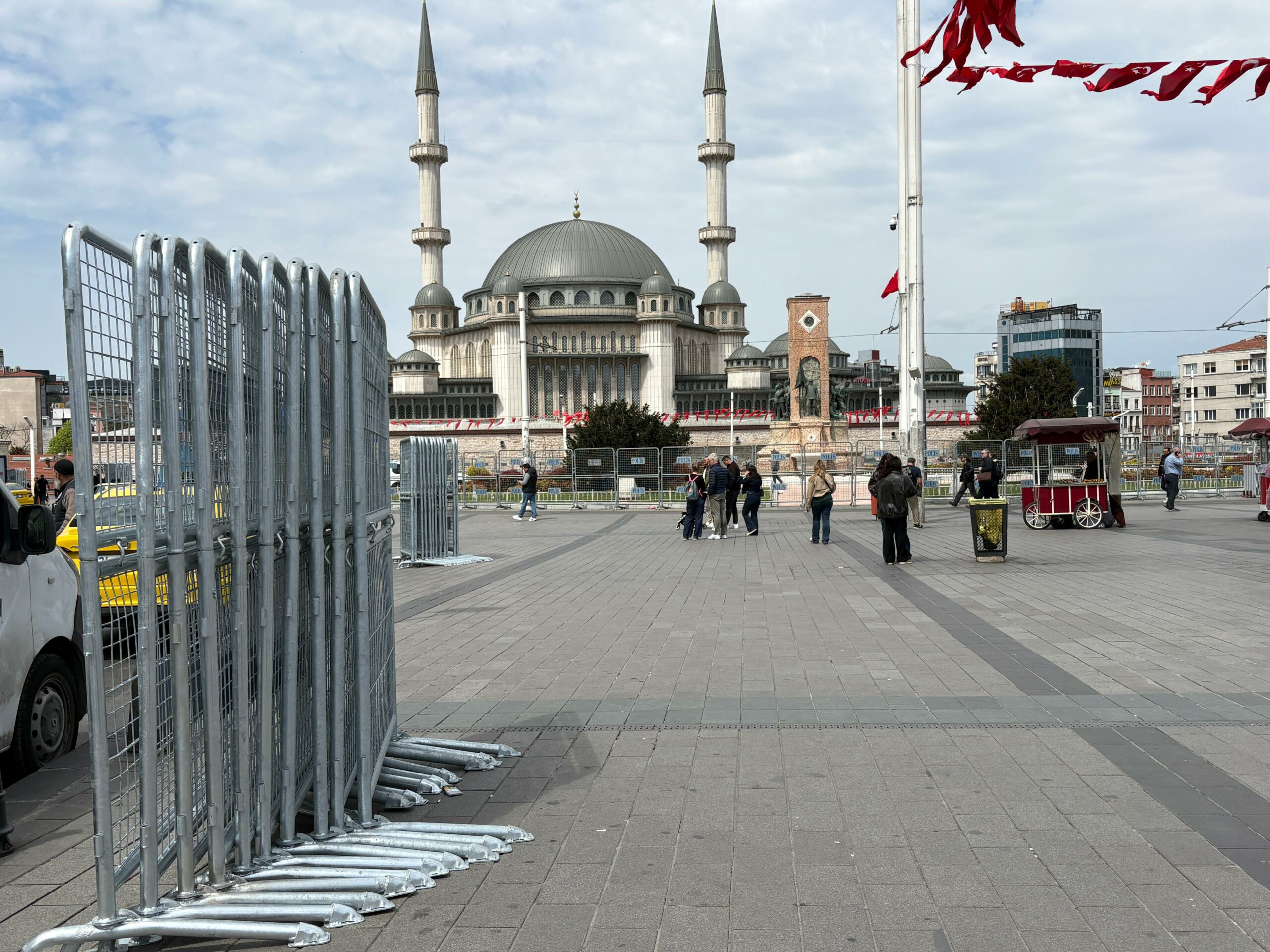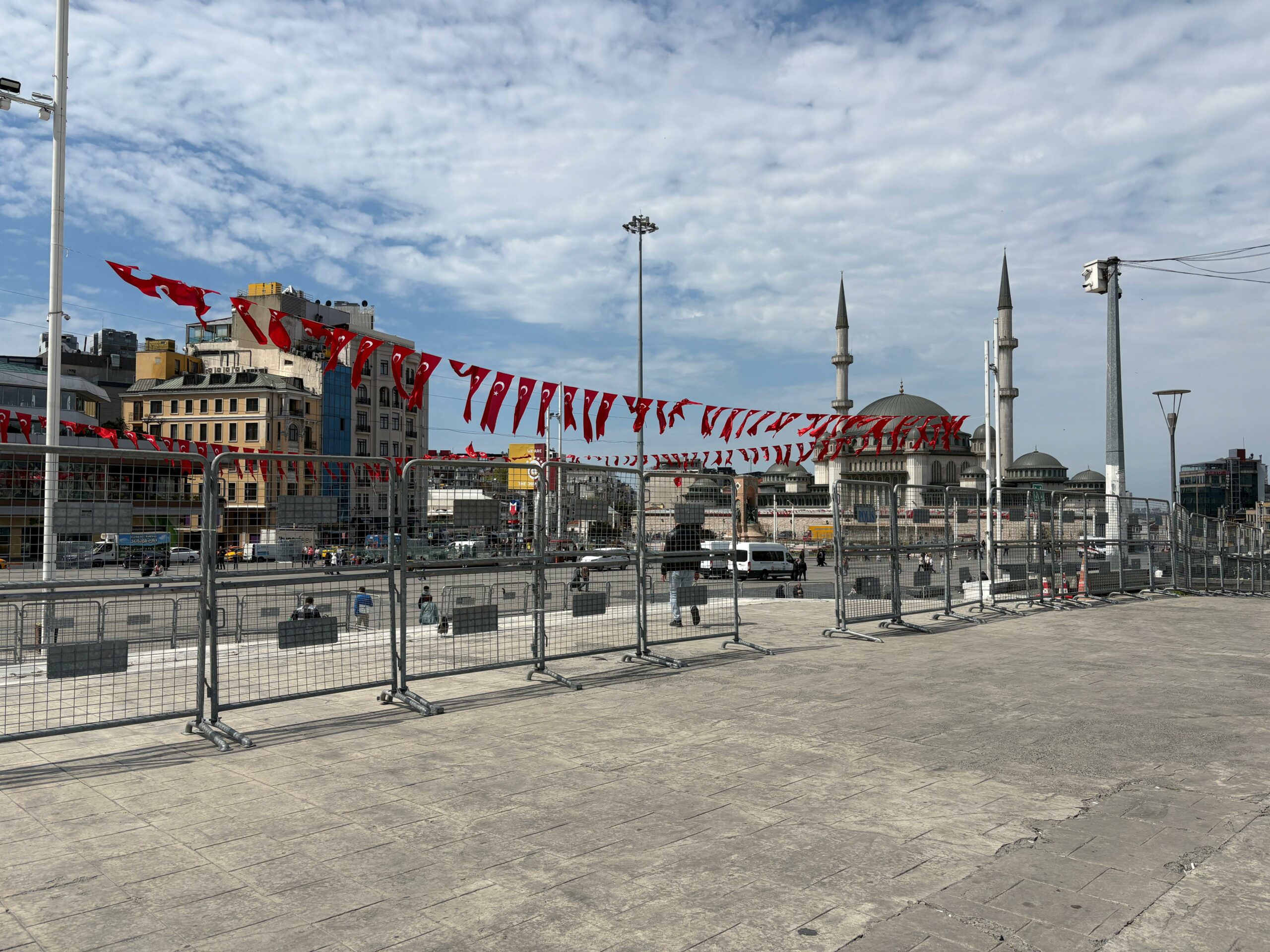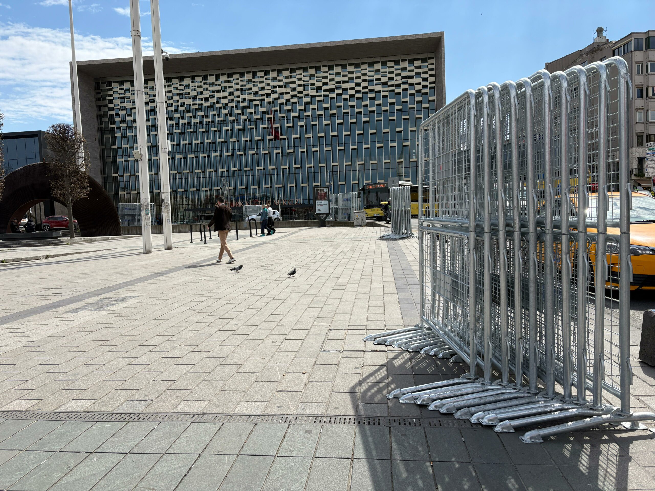 1 Mayıs Emek ve Dayanışma Günü için Taksim Meydanı’na demir bariyerler getirildi. Taksim Cumhuriyet Anıtı’nın etrafı daha önceden kapatılmışken bugün getirilen bariyerlerle gezi parkının çevresi de kapatıldı.