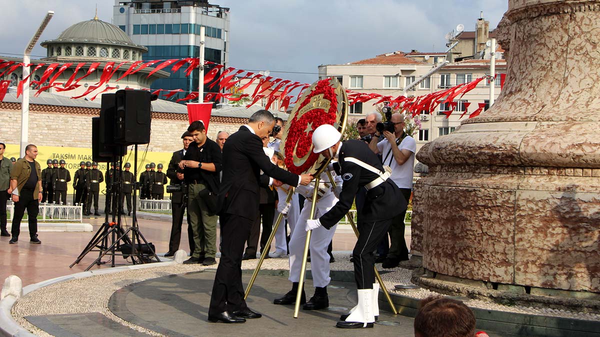 30 Ağustos Zafer Bayramı kutlamaları kapsamında, Taksim Cumhuriyet Anıtı önünde tören düzenlendi. Törene, İstanbul Valisi Ali Yerlikaya, İstanbul 1’inci Ordu Komutanı Orgeneral Ali Sivri, İstanbul Büyükşehir Belediye Başkanı Ekrem İmamoğlu ve siyasi parti temsilcileri katıldı.