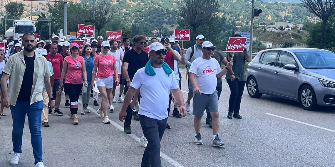 Bolu Belediye Başkanı Tanju Özcan, CHP Genel Merkezi’ne başlattığı ‘Adalet ve Değişim’ yürüyüşüne 6’ncı gün devam etti. Özcan, Kızılcahamam çıkışında verdiği molada basın mensuplarına açıklama yaptı. Özcan, “İnancımız her geçen gün daha artıyor. Şurada kaldı 4 gün. Tabii genel merkezdeki panik de buna paralel olarak artmaya devam ediyor. Lütfen genel merkezin kapılarını kapatmasınlar. Partililere evin kapısı kapatılmaz. Bu, kapının önünü göstermek demektir, ‘gidin’ demektir. Zaten bunu yapmaya çalıştığınızı biliyoruz; ama paniğinizi de anlıyoruz.