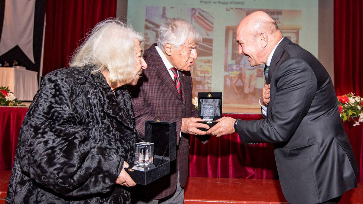 Başkan Soyer, Tarihi Yapıda Yaşam Kategorisi Jüri Özel Ödülü’nü, Yavuz Kitabevi sahipleri Birgül ve Rakıp Kitapçı’ya, Tarihi Yapıda Yaşam Ödülü’nü Sacide ve Rüştü Sevgel Evi’ni (Birgi) temsilen Ruhşen Cingöz’e, Tarihi Çevre ve Kültür Varlıklarını Koruma Dalında Katkı Ödülü’nü İzmir Körfezi Batıkları kitabı yazarı Uluç Hanhan ve ailesine takdim etti.