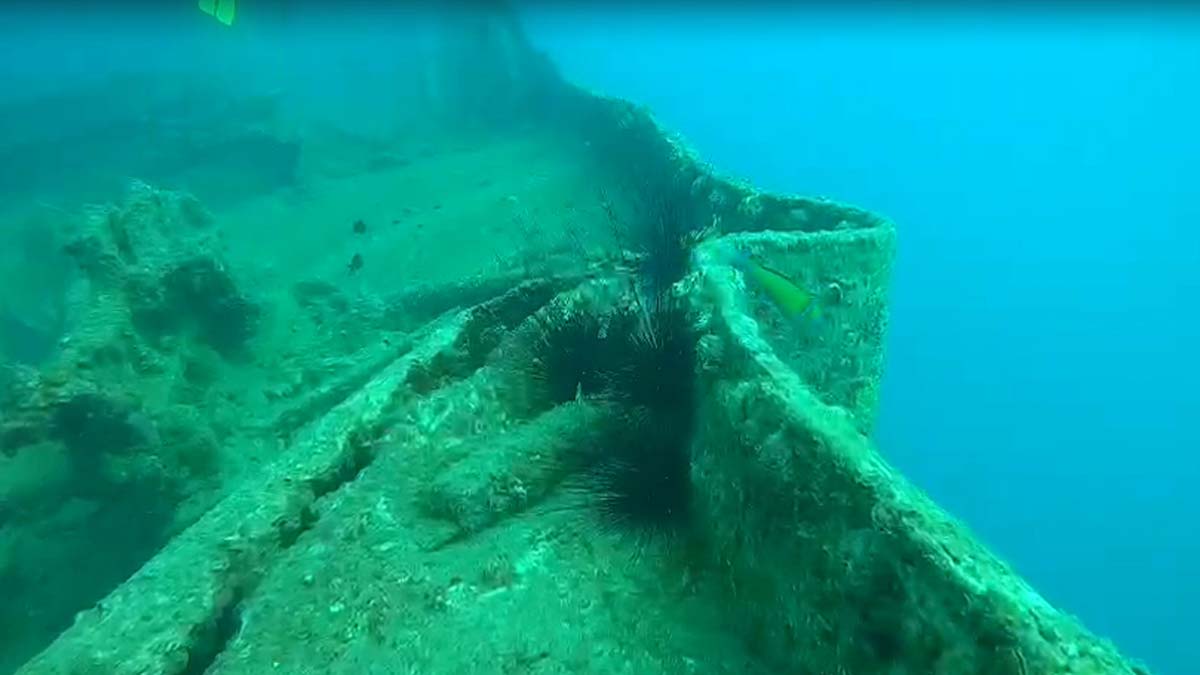 Antalya Yat Limanı açığında 1942’de batırılan St Didier gemisine turistik dalışlar yapan dalış eğitmeni Yusuf Öztürk, istilacı uzun dikenli deniz kestanesi ve aslan balıklarının tarihi batığı istilasını su altı kamerasıyla görüntüledi.