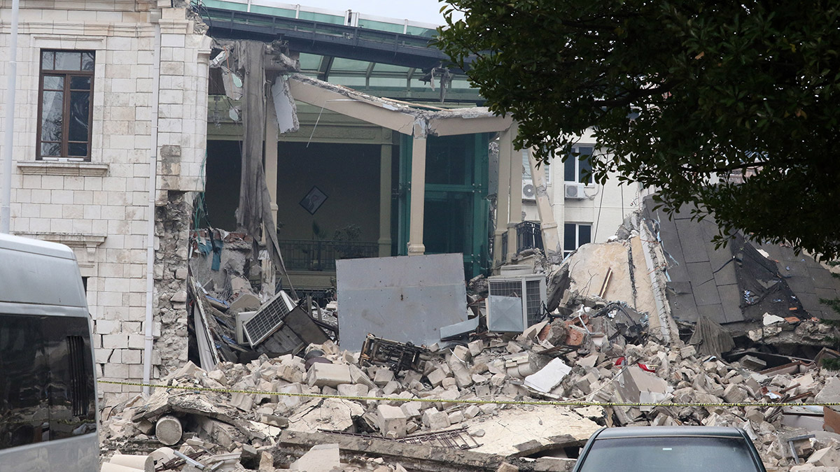Kahramanmaraş merkezli iki büyük depremde hasar gören tarihi Hatay Valilik binasının bir bölümü, dün akşam 3 dakika arayla meydana gelen 6.4 büyüklüğündeki depremde çöktü.