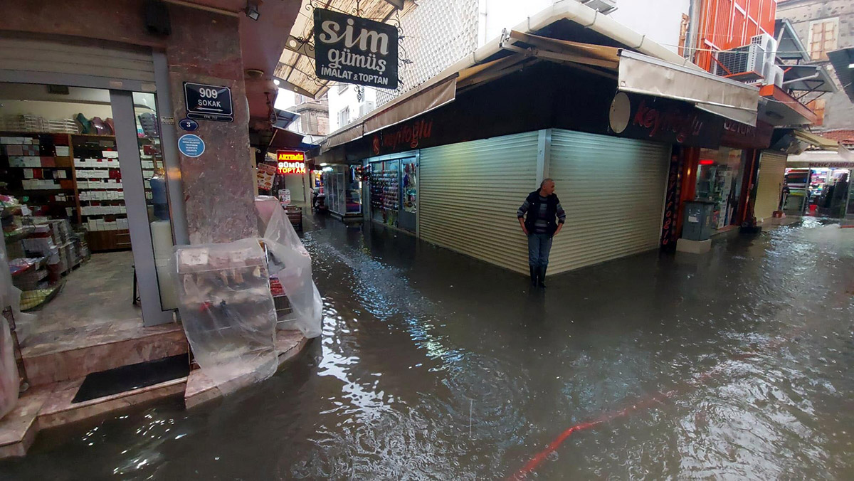Sağanakta, önceki gün su baskınlarının yaşandığı Tarihi Kemeraltı Çarşısı ise yine sular içinde kaldı. Küçük Demirhan İşhanı’ndaki çok sayıda iş yerini de su bastı. Esnaf, kendi imkanlarıyla yağmur sularını tahliye etmek için çalışmalarını sürdürürken, su baskınlarına karşı teyakkuza geçti.