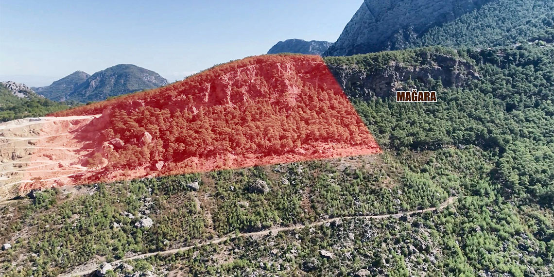 Antalya’da genişleme başvurusu yapan kalker ocağının genişleme sınırı, bölgede Bizans Dönemi’ne tarihlenen ve aşı boyasıyla yapılan geyik, karaca figürleri ile yazıtın yer aldığı Karaindibi Mağarası’na dayandı.