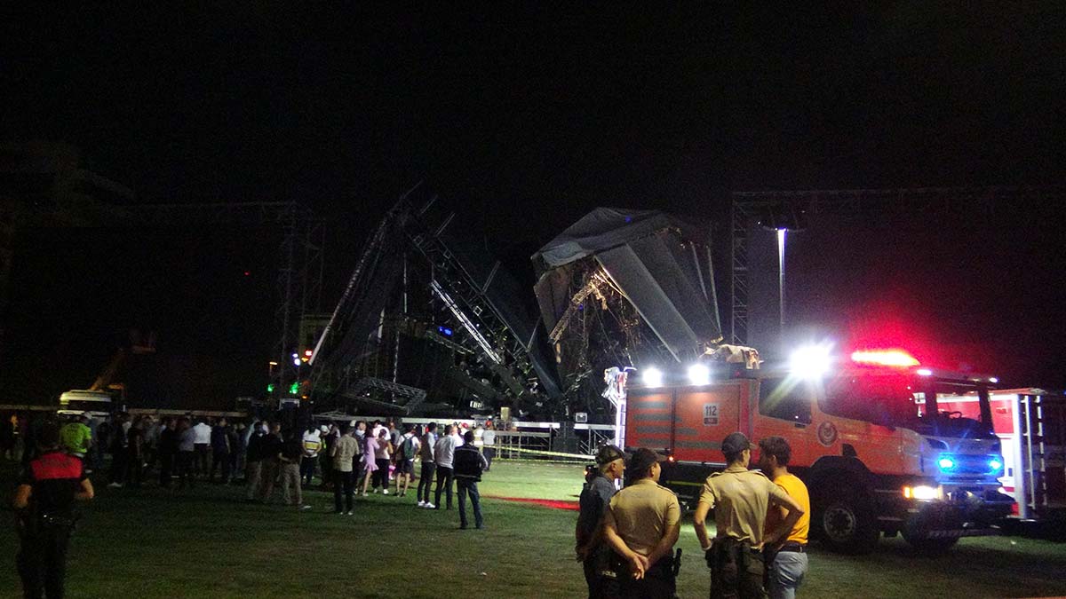 Bu arada kaza anında olay yerinde bulunan Süleyman Yunus Pirman, “Biz yürürken çatının çökmesi ile beraber hepsi devrildi. Çığlık sesi falan yoktu, güvenlik görevlileri de kimsenin olmadığını söyledi. Sahne komple yıkıldı, sonradan ışıkları da söndürdüler” dedi.