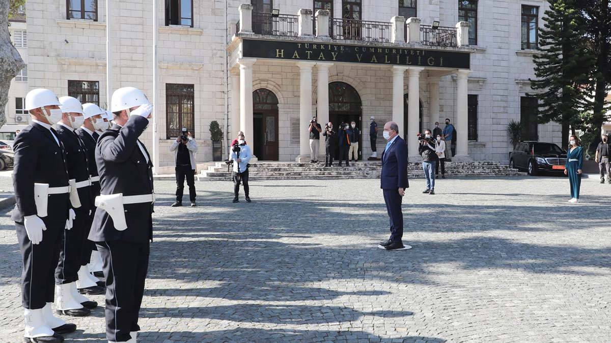 KKTC Cumhurbaşkanı Tatar, Hatay programı kapsamında ilk olarak valiliği ziyaret etti. Tören mangası ile karşılanan Tatar, valilik şeref defterini imzaladıktan sonra Vali Rahmi Doğan ile bir araya geldi. Ziyarette konuşan KKTC Cumhurbaşkanı Tatar, “Türkiye ile Kuzey Kıbrıs Türk Cumhuriyeti fevkalade güzel ilişkiler içerisinde.