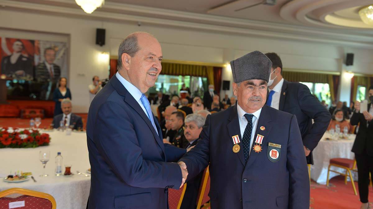 KKTC Cumhurbaşkanı Ersin Tatar, bir dizi ziyaret ve programa katılmak üzere geldiği Hatay’da, Kıbrıs gazileri ile bir araya geldi. Bir otelde düzenlenen ve Hatay Valisi Rahmi Doğan ile çok sayıda gazi ve ailesinin katıldığı toplantıda konuşan Tatar, Kıbrıs gazileri ile buluştuğunda ailesiyle buluşuyormuş gibi sevindiğini söyledi. Konuşmasının başında, Kıbrıs Barış Harekatı’nda şehit olanlara Allah’tan rahmet ve ailelerine başsağlığı dileyen Tatar, gazilere de sağlık diledi. Tatar, konuşmasının devamında şunları söyledi: