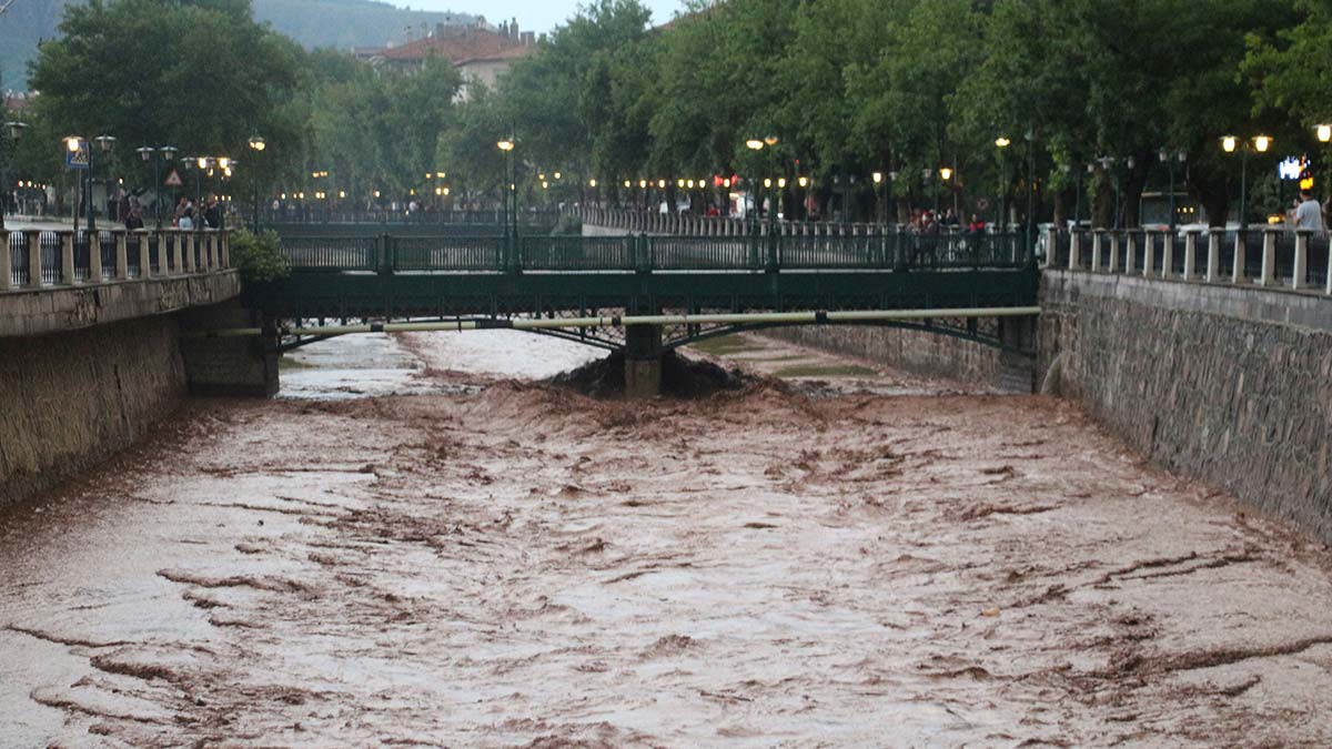 Çankırı’da etkili olan sağanak yağış nedeniyle şehir merkezinden geçen Tatlıçay’ın debisi yükseldi.