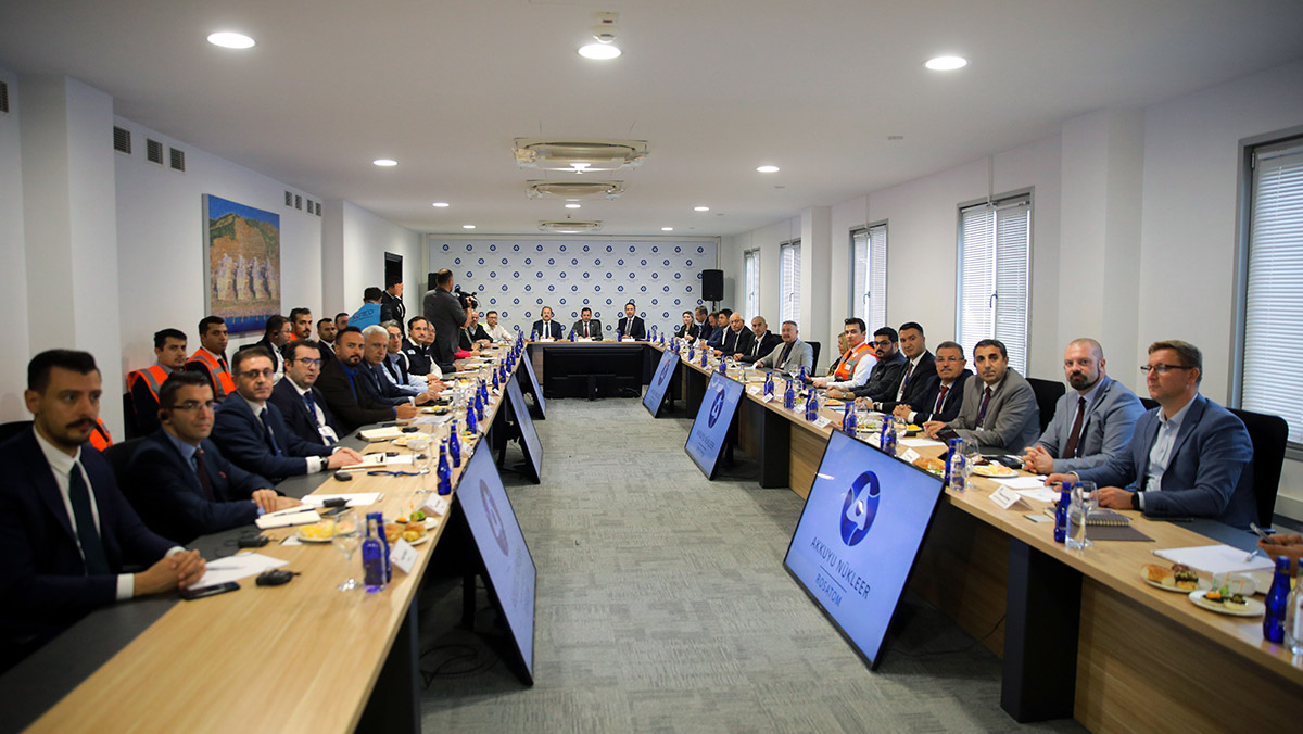 Kamu Kurumları ile İlişkiler ve Uluslararası İş Birliği Yönetici Direktörü Aleksey Frolov, Üretim ve İnşaat Organizasyon Direktörü Denis Sezemin konuklara eşlik etti. Dmitry Romanets, heyet üyelerine güç ünitelerinin inşasında gelinen noktayı, kullanılan teknolojileri ve inşaatta kullanılan malzemeleri ayrıntılı olarak anlattı.