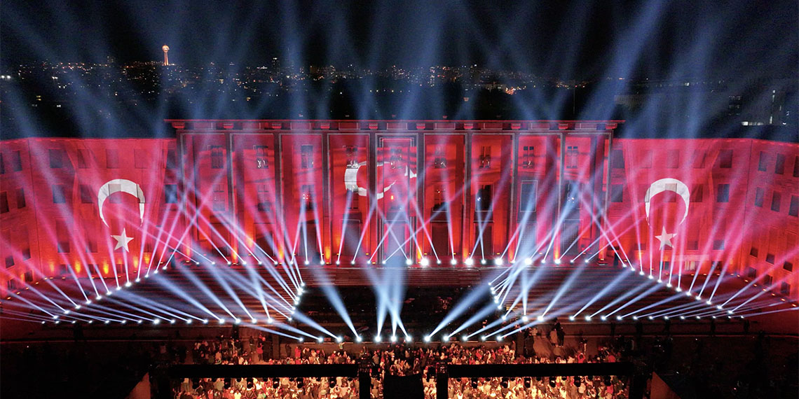 Konserin ardından geçmişten günümüze Türk tarihini anlatan ışık ve bir yansıtma tekniği olan mapping gösterisi yapıldı. Gösteriyle, 1071’den 2024’e kadar geçen zaman, Meclis ana binasının yüzeyine yansıtıldı. Yaklaşık 8 dakika süren ışık ve mapping gösterisinde, millet iradesine atıfta bulunularak ‘Hakimiyetin sahibi millettir’ ifadesine yer verildi.