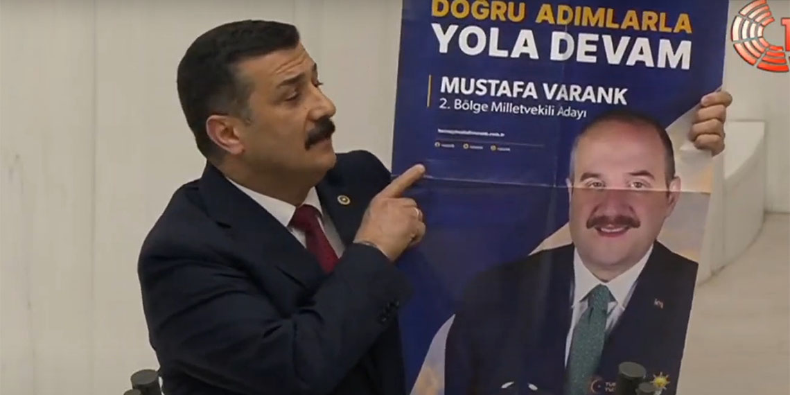 İYİ Parti Bursa Milletvekili Selçuk Türkoğlu, “AK Parti’li Başkan Alinur Aktaş’ın yönettiği dönemde Bursa Büyükşehir Belediyesiyle ilgili skandal niteliğindeki belgeleri açıklamaya devam edeceğim. Elimizdeki belgeler Bursa Büyükşehir Belediyesi geçmiş dönem özel kalem üzerinden yapılan harcamaları gösteriyor. Olur ve onay yazısında aynen şöyle söylüyor; ’26 Mart 2024 TBMM 27’nci Dönem Başkanı Mustafa Şentop ve beraberindeki heyet ile Çalışma ve Sosyal Güvenlik Bakan Yardımcısı Sayın Ahmet Aydın’ın Bursa ziyareti, yemek ve ikram masraflarıdır.’ Buna da tamam. Fatura kaç lira biliyor musunuz, yemek ve ikram masrafları? Biri 605 bin lira, bir diğeri de 863 bin 500 lira; toplamda 1,5 milyon lira yani. Şimdi ben buna da itiraz etmeyeceğim ama bir de baktık ki detaya, o faturanın arasına, içine neler sıkıştırılmış. AKP seçim çalışmaları var, seçim saha çalışmaları var, AKP İl Başkanlığı’na giden paketler var. Ama ilginç olanlardan bir tanesi Sayın Mustafa Varank’ın seçim afişi var, yani şu afişi Sayın Mustafa Varank belediyenin imkanı ve parasıyla bastırmıştır, işte bu afişi. Buraya kadar düşürülür mü, gerçekten merak ediyorum. Yazıktır, günahtır” ifadelerini kullandı.