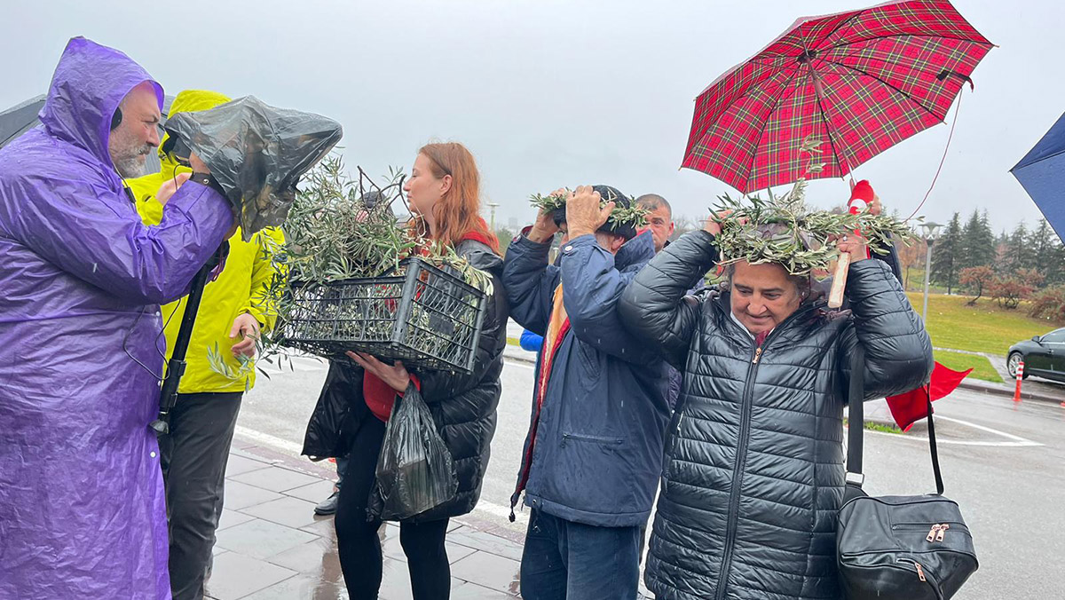 Türkiye Erozyonla Mücadele Ağaçlandırma ve Doğal Varlıkları Koruma Vakfı’nın (TEMA) çağrısıyla Muğla’dan gelen yaklaşık 100 zeytin üreticisi, TBMM kapısında toplandı. Grubun, bütçe görüşmeleri nedeniyle ziyaretçi yasağı olması nedeniyle içeriye girişine izin verilmedi. Muhalefet milletvekilleri, grubu, kendi araçları ile Meclis kampüsüne taşıdı. Ellerinde ‘Zeytinime dokunma’ yazılı pankart bulunan grup, getirdikleri zeytin dallarından yaptıkları taçları başlarına taktı.
