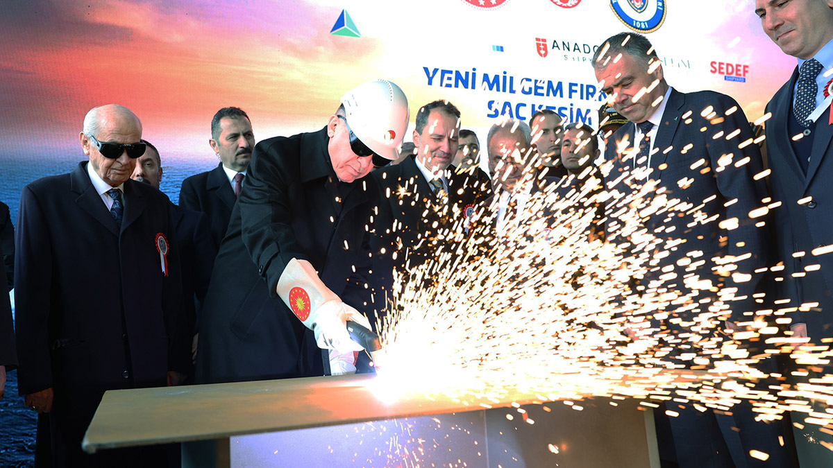 Güçlenen ve büyüyen Türkiye’nin güvenliğini artık kendi sınırlarının ötesinde başladığı gerçeğini herkes görmeli ve kabul etmelidir. Bu anlayışla, ülkemizin menfaatlerini uluslararası alanlarda korumak ve geliştirmek için bu tür projelerin sayılarını artırarak sürdüreceğiz. Türkiye Yüzyılı’nın inşasını, savunma sanayimizin önümüzü açtığı güvenli yoldan ilerleyerek gerçekleştireceğiz. Hizmete aldığımız ve sac kesimini yaptığımız gemilerimizin ülkemize, ordumuza, Deniz Kuvvetleri Komutanlığımıza hayırlı olmasını diliyorum” şeklinde konuştu.