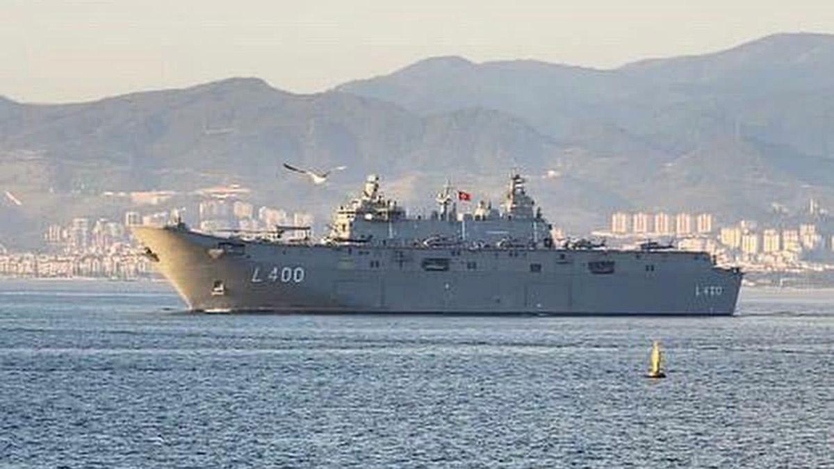 Dünyanın ilk silahlı insansız hava aracı (SİHA) gemisi ve Türkiye’nin en büyük askeri savaş gemisi olan TCG Anadolu, İstanbul Sarayburnu’ndaki 16 günlük ziyaret süresini tamamlamasının ardından rotasını İzmir’e çevirdi. Uçuş güvertesinde 10 helikopter veya 11 SİHA, hangarında ise 19 helikopter veya 30 SİHA konuşlandırabilen, araç güvertesinde ise 13 tank, 27 zırhlı amfibi hücum aracı (ZAHA), 6 zırhlı personel taşıyıcı, 33 muhtelif araç, 15 römork olmak üzere toplamda 94 araç taşıyabilen TCG Anadolu, bu sabah İzmir’e ulaştı.
