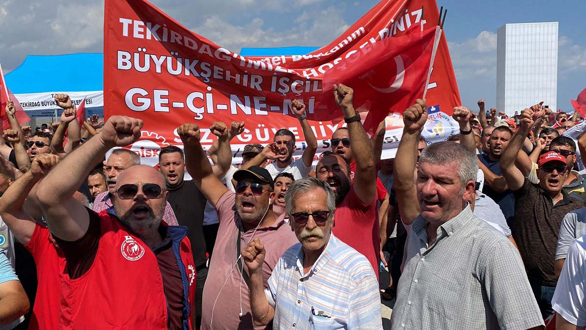 CHP Genel Başkanı Kemal Kılıçdaroğlu’nun gerçekleştireceği Tekirdağ Büyükşehir Belediyesi’nin yeni hizmet binasının açılışı öncesi belediye işçileri, ‘ek zam’ eylemi yaptı.