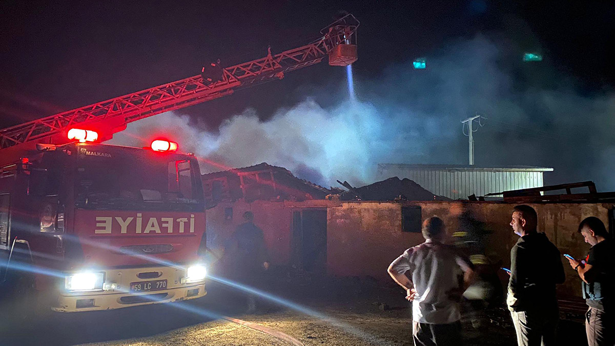 Tekirdağ’da çiftlikte yangın; 10 küçükbaş hayvan öldü, 10 ton buğday ile saman ve ot balyaları yandı.