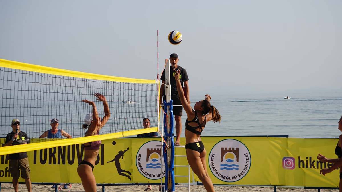 Marmara Ereğlisi Belediyesi tarafından ‘yaz şenlikleri kapsamında’ bölge halkın katılımıyla başlayan voleybol turnuvası, yerli halkın yanı sıra yabancı sporcuların da yoğun ilgi göstermesiyle dikkat çekiyor. Bu yıl 3’üncüsü düzenlenen ve yabancı sporcuların katılımıyla uluslararası olma özeliğini taşıyan ve 2 gün süren turnuvaya, Türkiye’den Selin Aşıkoğlu, Zeynep Bora, Medine Korkmaz, Vera Sürmen, Öykü Binici ve Esra Demirkıran, ABD’den Juhanita Mendoza, Devin Von Pingel, İspanya’dan, Ester Ribera, Catalina Pol, Arnavutluk’tan Xhudgena Kruti, Adelayda Prenga, Bosna Hersek’ten, Elisa Beshinr ve Lyra Pireva çifti ile 7 takımda 14 kadın sporcu katıldı.