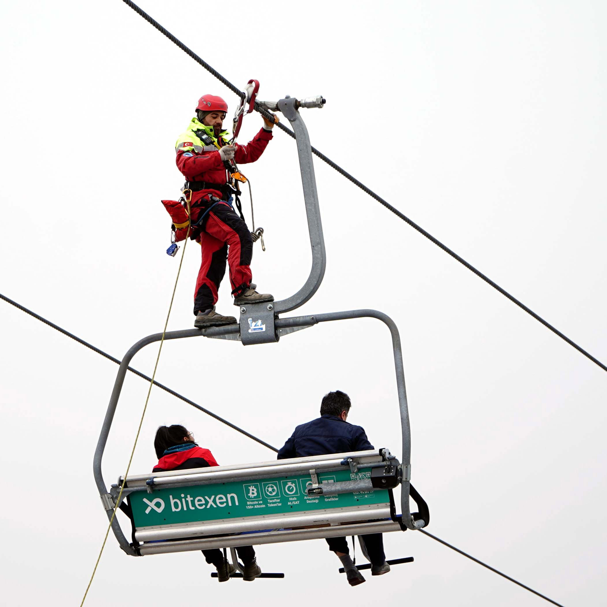 Kayseri’deki Erciyes Kayak Merkezi’nde, kış sezonu öncesi teleferikte mahsur kalanları kurtarma tatbikatı yapıldı.