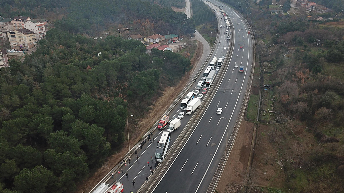Kocaeli’de TEM Otoyolu İzmit geçişinde 23 aracın karıştığı kaza meydana geldi. Çok sayıda kişi yaralandı, İstanbul yönü trafiğe kapandı.