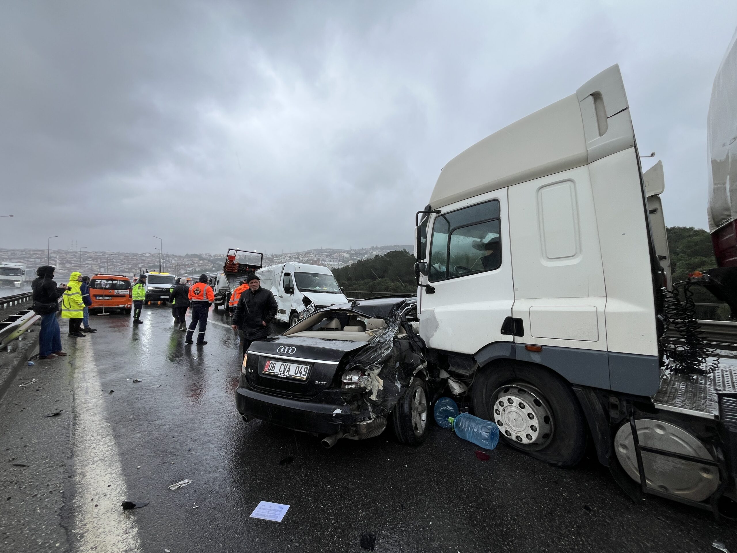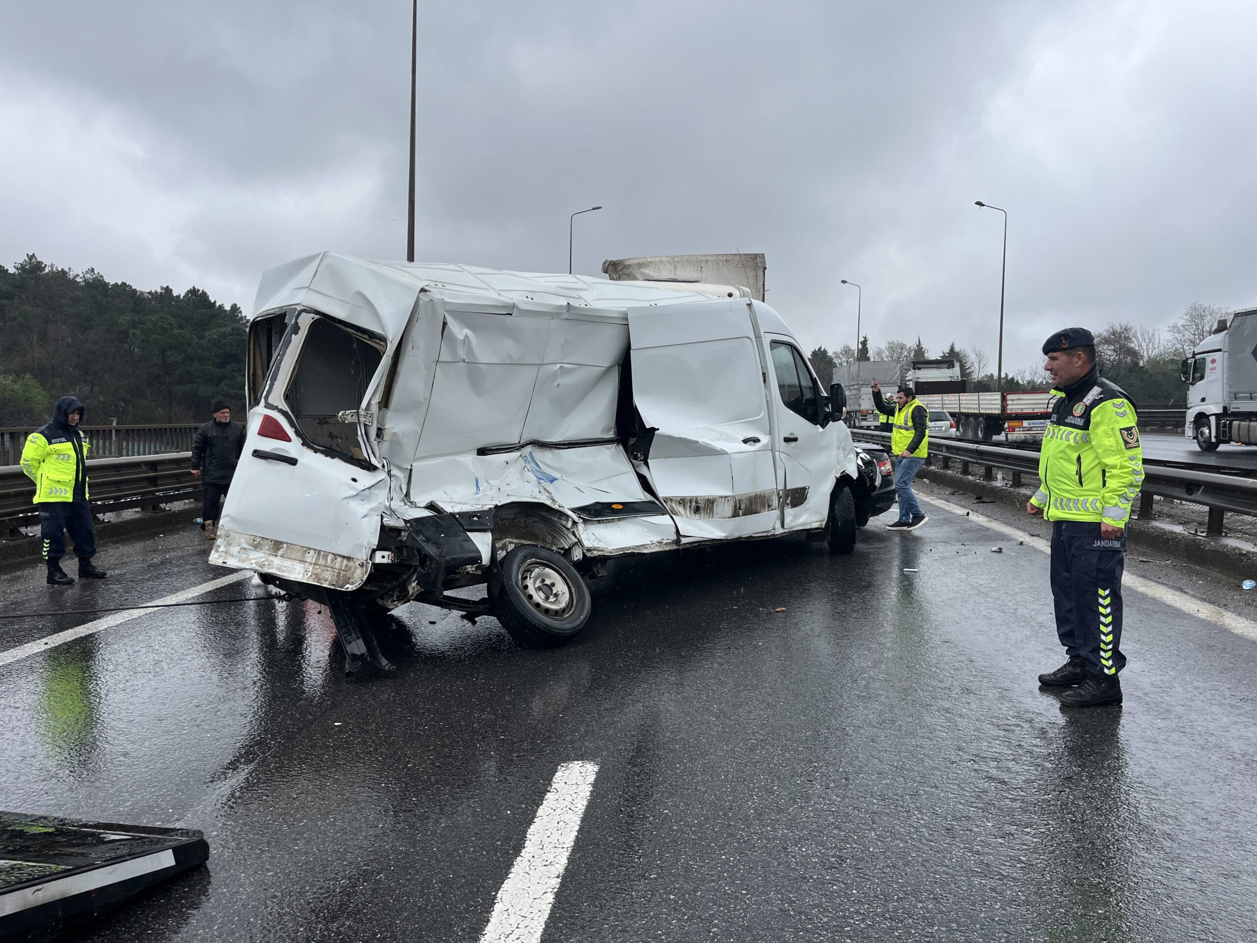 Kaza, saat 12.00 sıralarında Tem Otoyolu’nun İzmit ilçesi geçişi Kuruçeşme Fatih Mahallesi mevkisi Çınarlıdere Viyadüğü’nde meydana geldi. İstanbul yönüne giden 3 otomobil, 2 TIR ve minibüs yağmur nedeniyle kayganlaşan yolda çarpıştı. Kazada otomobillerden birindeki 3 kişi yaralandı. Diğer sürücülerin 112 Acil Çağrı Merkezi’ne ihbarı üzerine kaza yerine sağlık ve jandarma ekipleri sevk edildi.