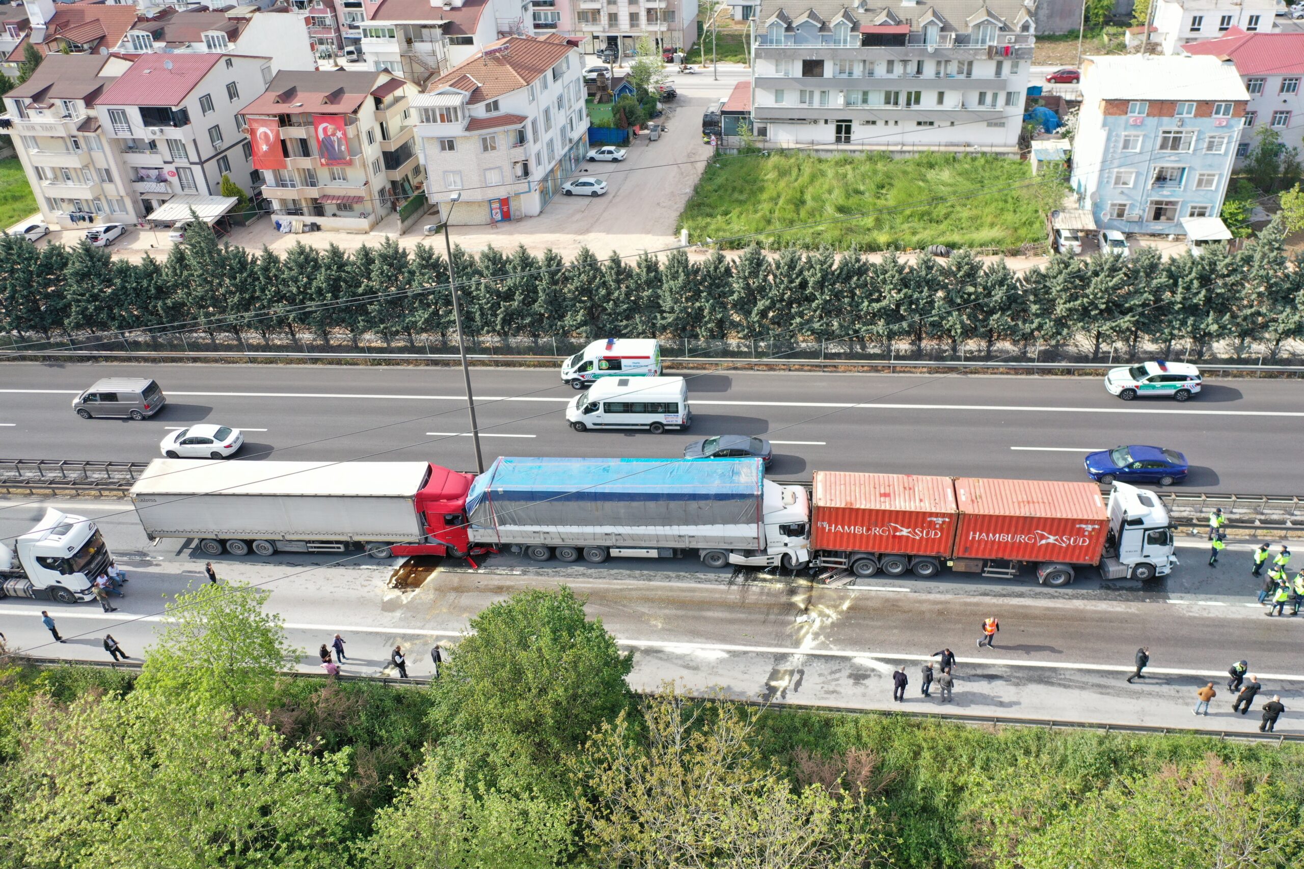 Ekipler, otoyolun sağ şeridinde temizlik çalışması yaptı. Çalışmaların tamamlanmasının ardından trafik sağ şeritten ulaşıma açıldı. Sol şeritteki TIR’ların kaldırılmasına yönelik çalışmalar sürüyor.