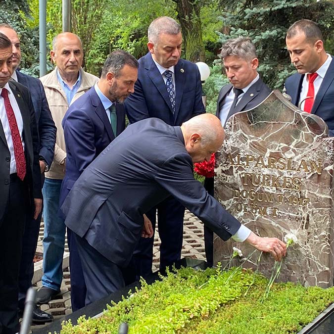 MHP Genel Başkanı Devlet Bahçeli, bayram namazının ardından MHP’nin kurucu Genel Başkanı Alparslan Türkeş’in Beştepe’de bulunan kabrini ziyaret etti. Burada kendisini karşılayan partililerle tek tek bayramlaşan Bahçeli, Türkeş’in kabrine karanfil bıraktı, su döktü. Kuran-ı Kerim okunması ve dua edilmesinin ardından açıklama yapan Bahçeli, “Öncelikle aziz milletimizin ve İslam aleminin mübarek Kurban Bayramı’nı tebrik ediyorum. Daha nice bayramlar görmeyi Cenabı Allah’tan nasip ediyoruz.