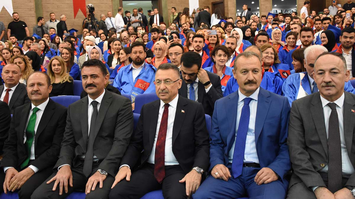 Cumhurbaşkanı Yardımcısı Oktay, Kırıkkale Üniversitesi’nin ‘2021-2022 Akademik Yılı Mezuniyet Töreni’ne katıldı. Kastamonu ve Bartın başta olmak üzere Batı Karadeniz’de yaşanan sel felaketinden etkilenenlere ‘geçmiş olsun’ dileklerini ileten Oktay, yaraların hızla sarılacağını söyledi. Oktay, tarihin ilk üniversitelerine ev sahipliği yapmış coğrafyada, geçmişten bugüne ilmin peşinden giden medeniyetin temsilcileri olduklarını belirterek, şunları kaydetti: