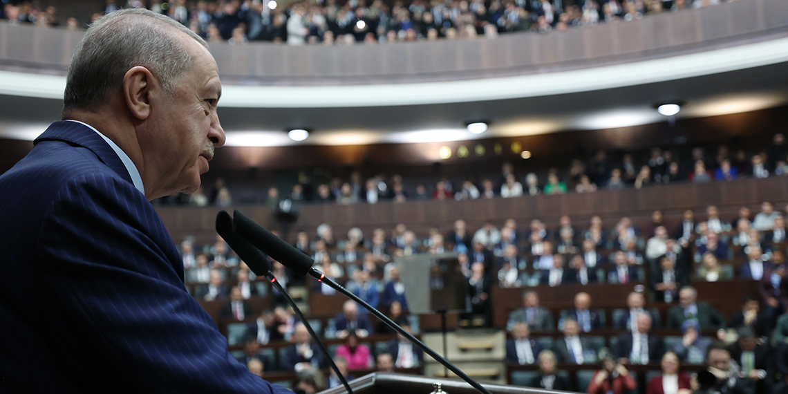 Bölgedeki gelişmelere yapıcı istikamette vaziyet ettiklerini, kendi kronik sorunlarını çözme yönünde adımlar atmaktan da geri durmadıklarını söyleyen Erdoğan, “Bilindiği gibi Türkiye’nin 40 yılı geride bırakan bir bölücü terör meselesi bulunuyor. Geçtiğimiz aylarda, bu meseleyi kalıcı şekilde sona erdirme yönünde, Cumhur İttifakı ortağımız Sayın Bahçeli’nin cesur çıkısıyla başlayan bir dizi gelişmeye şahitlik ettik. Gelinen noktada, aziz milletimizin bu konuda ‘ihtiyatlı bir iyimserlik’ içinde olduğunu görmekteyiz. Hükümet olarak, her vakit olduğu gibi bu hususta da şehitlerimizin aziz hatıralarına, şehit yakınlarımızın ve gazilerimizin hassasiyetlerine asla halel getirmeyecek bir şuurla hareket ediyoruz. Türkiye’nin, insani ve ekonomik olarak çok büyük bedeller ödediği böyle bir sorunu kalıcı biçimde geride bırakması, istisnasız herkesin faydasınadır; ülkemizin hayrınadır. ‘Terörsüz Türkiye’ ifadesinde anlamını bulan bu yeni dönemin kapılarını açma fırsatını kullanmamak, her şeyden önce üstlendiğimiz sorumlulukla bağdaşmaz. Bölgesel gelişmeler lehimizedir. İç siyasette hava son derece müsaittir. Terörle mücadelede kritik kazanımlar elde edilmiştir” dedi.