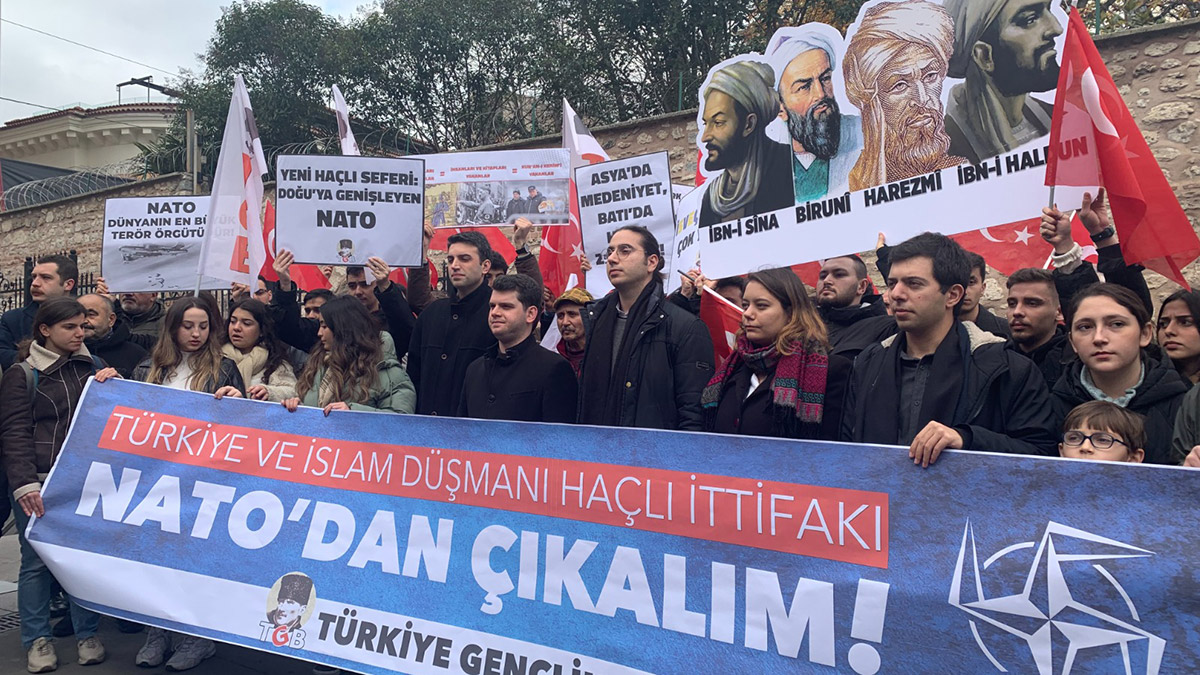 Türkiye Gençlik Birliği, İsveç Konsolosluğu önünde Kur’an-ı Kerim yakılmasını protesto etti. Pankart ve dövizler açarak slogan atan grup, adına yapılan basın açıklamasında “NATO’dan çıkalım” denildi.