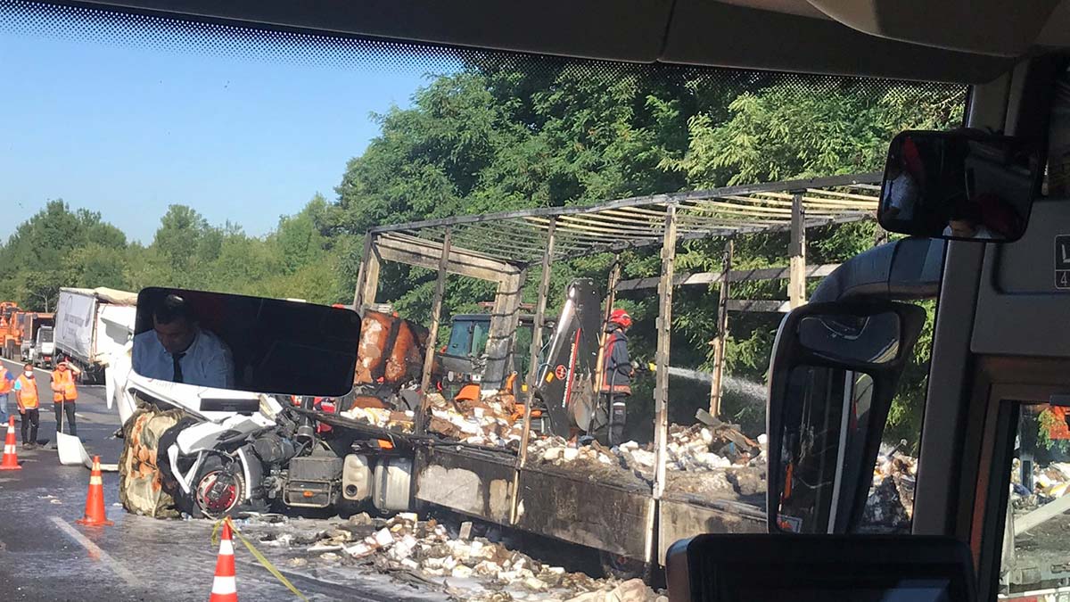 Kaza, saat 06.30 sıralarında, TEM Otoyolu Hendek Çakallık Mahallesi mevkisinde meydana geldi. İstanbul istikametine gitmekte olan Musab Bişi idaresindeki 47 AJ 032 plakalı TIR, önünde ilerlemekte olan 34 EEV 650 plakalı TIR’a arkadan çarptı. Musab Bişi ‘nin kullandığı TIR, motor kısmından alev alarak yanmaya başladı.