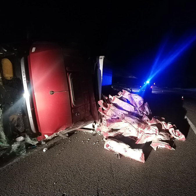 Sürücü Özdun yaralanırken, dorsedeki tonlarca karkas et yola saçıldı. Sağlık ekiplerince İnegöl Devlet Hastanesi’ne kaldırılan Öğdun’un durumunun iyi olduğu bildirildi. Kara yoluna saçılan tonlarca et de ekiplerce temizlendi.