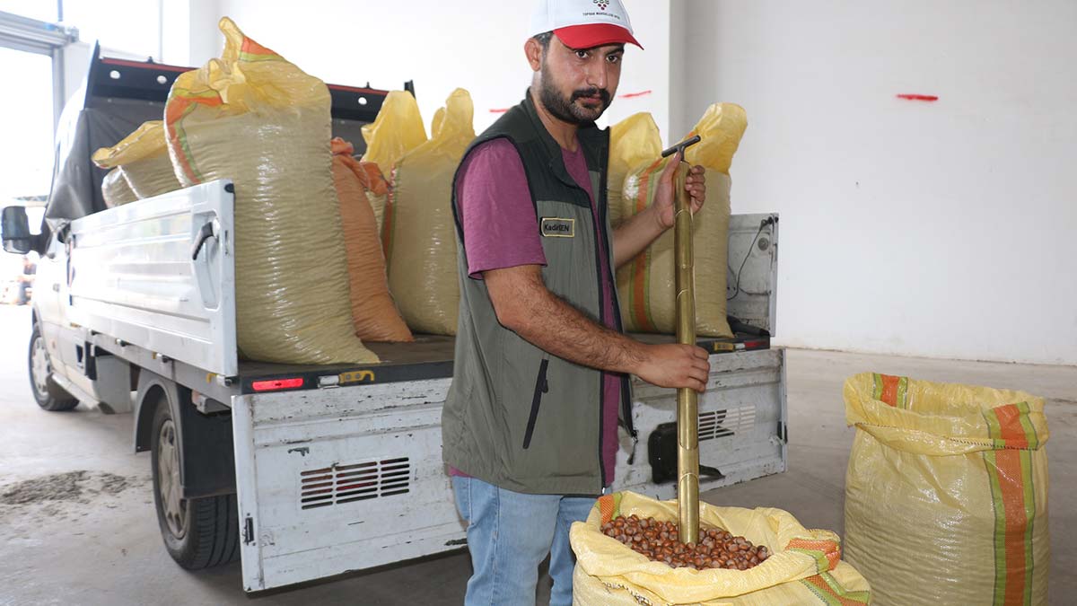 TMO tarafından Ordu’nun Altınordu, Fatsa ve Ünye ilçelerinde, yeni sezon fındık alımına bugün başlandı. Sistem üzerinden randevu oluşturan üreticiler, fındıklarını TMO alım noktasına götürdü. TMO görevlileri de ilk olarak fındık çuvallarından numune aldı. Yapılan incelemede, bir üreticiye ait fındıkta 53 randıman geldi. Yüzde 5 nem oranı çıkan fındık için üreticiye, kilo başına 55 lira 12 kuruş ödeme yapılacak. TMO’nun ilk günde üreticilerden 25 bin tona yakın fındık alımı yapacağı belirtildi.