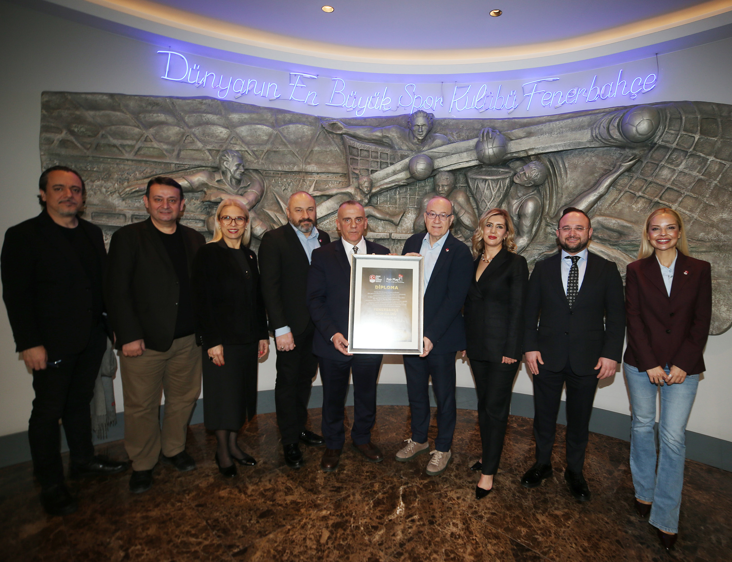 Fenerbahçe Spor Kulübü’nde gerçekleşen teslim törenine Fenerbahçe Amatör Şubeler Koordinatörü Yüksel Seçkin Saruhan, Türkiye Milli Olimpiyat Komitesi (TMOK) Fair Play Komisyonu Başkanı Haldun Domaç ve komisyonun yönetim kurulu üyeleri katıldı.