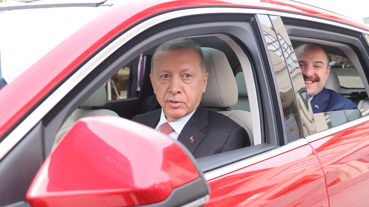 Türkiye’nin yerli ve milli otomobili Togg’un ilk siparişini veren Cumhurbaşkanı Recep Tayyip Erdoğan ve Emine Erdoğan’a Cumhurbaşkanlığı Külliyesi’nde yapılan tören ile araçları teslim edildi. Cumhurbaşkanı Erdoğan, Gemlik renginde olan Togg’u tercih ederken, Emine Erdoğan’a ise 34 EE 2071 plakalı Anadolu kırmızısı rengindeki araç teslim edildi. Erdoğan çiftine araç ruhsatlarını Sanayi ve Teknoloji Bakanı Mustafa Varank ve Türkiye Odalar ve Borsalar Birliği Başkanı Rifat Hisarcıklıoğlu verdi. Erdoğan çifti, daha sonra araca binerek Cumhurbaşkanlığı Külliyesi içinde tur attı.