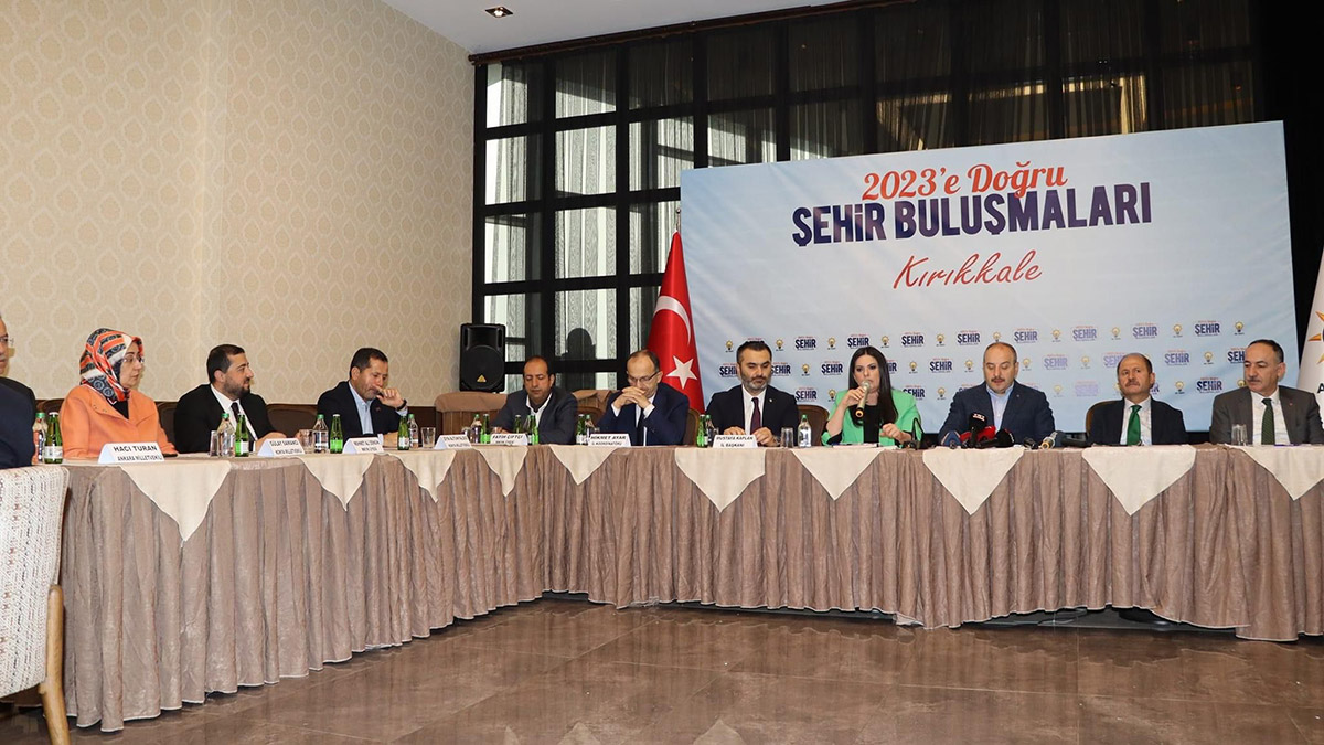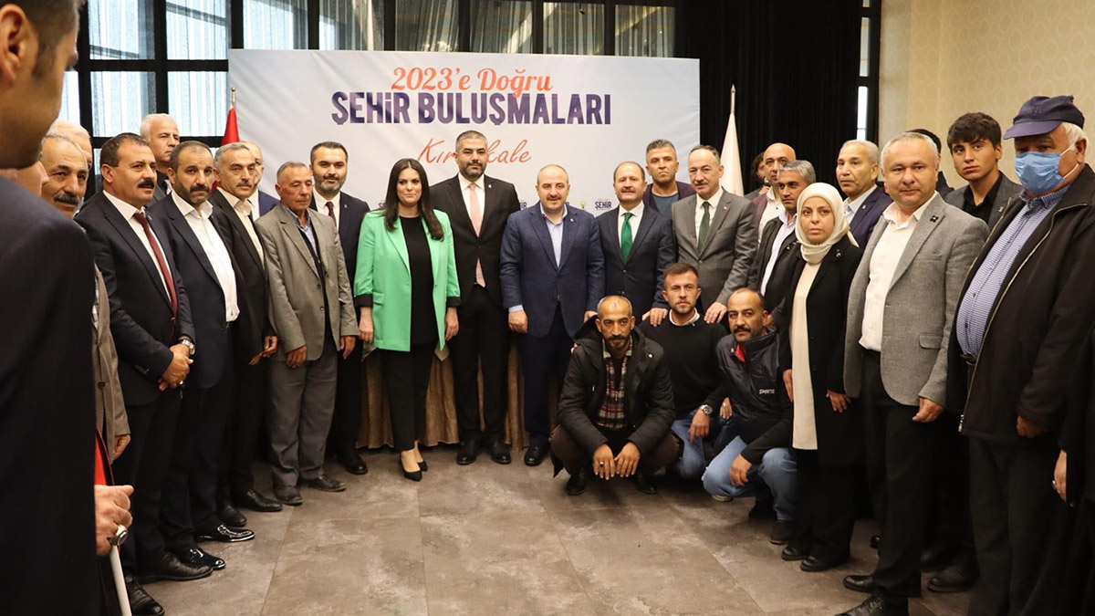 Kırıkkale’de düzenlenen ‘2023’e Doğru Şehir Buluşmaları’ programına Bakan Mustafa Varank’ın yanı sıra AK Parti Genel Başkan Yardımcısı Jülide Sarıeroğlu, AK Parti Kırıkkale Milletvekili Ramazan Can, Kırıkkale Belediye Başkanı Mehmet Saygılı, MYK üyeleri, milletvekilleri ve partililer katıldı.