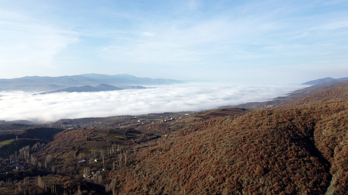 Kentte sabah saatlerinde hava sıcaklığının 2 dereceye kadar düşmesi sonucu sis etkili oldu. Kentin üzerini tamamen sis bulutu kapladı. Sis bulutu, kentin en yüksek noktalarından biri olan Topçam Yaylası’ndan ve dron ile de havadan görüntülendi.