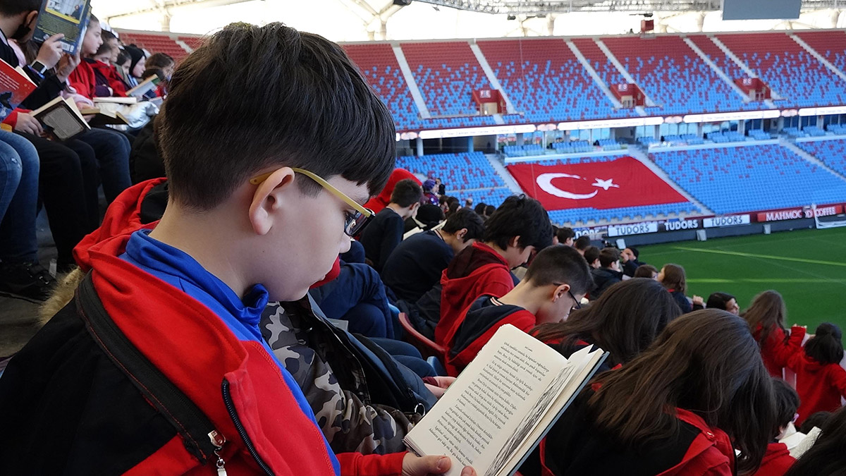 Ortahisar ilçesinde eğitim veren Mehmet Akif Ersoy Ortaokulu, Milli Eğitim Bakanlığı’nın ‘Her zaman her yerde okuyoruz’ projesi kapsamında kitap okuma etkinliği düzenledi. Her maçta binlerce taraftarın ağırlandığı Trabzonspor Kulübü Şenol Güneş Spor Kompleksi Akyazı Stadyumu’nda tribünler, Trabzon’un fethinin de tarihi olan 1461 öğrencinin katılımıyla düzenlenen kitap okuma etkinliğinde öğrencilerle doldu. Bütün mekanlarda ve tüm zamanlarda kitap okunabileceğini gösterme amacıyla etkinliğe katılan öğrenciler, önce kitap okudu sonra şarkılarla eğlendi.
