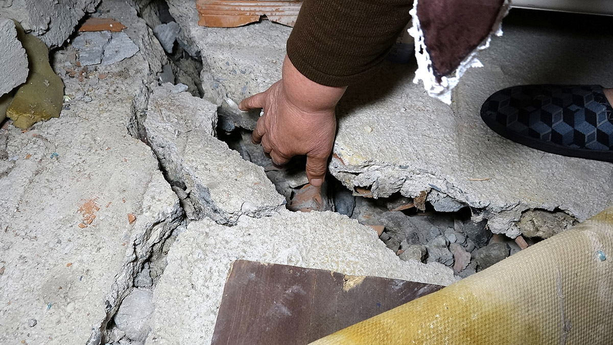 Kahramanmaraş’taki depremleri hissettiklerini ve bu sırada evlerindeki çatlakların büyüdüğünü belirten Fadime Yılmaz, “5 yıldır arazide kaymalar var. Burası afet bölgesi ilan edildi. İmkanı olan evlerini bıraktı gitti, imkanımız olmadığı için burada kaldık. Korku ile evimde yaşamaya devam ediyorum. Ev gittikçe yanlıyor. Kahramanmaraş’ta deprem oldu. Aynı depremi biz de burada yaşadık. Orada deprem olunca bizim evimiz çok sallandı. O korku ile yataktan fırladık. Eşim biraz ağır işitiyor. Onu kaldırdım ve dışarı çıktık. Korkudan eve giremedik. Dışarıda yattık. Ev bütün olarak gitti geldi, yanladı. Yerlerde ve duvarlarda olan ufak tefek çatlaklar hep büyüdü. Ev şu an yamuk duruyor” dedi.
