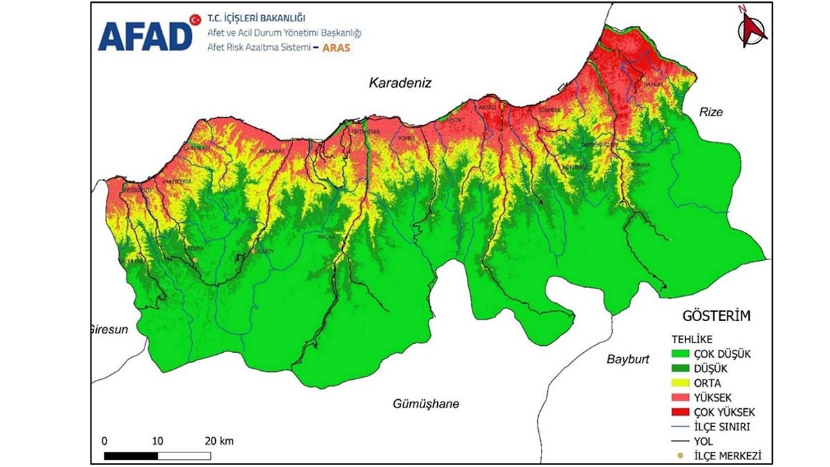 Doğu Karadeniz’de küresel iklim değişikliğinin de etkisiyle görülen ani lokal ve şiddetli yağışların yol açtığı, can ve mal kayıplarıyla sonuçlanan sel ve heyelanlara karşı tedbirler alınıyor. Türkiye’de heyelanın en fazla yaşandığı iller arasında yer alan Trabzon’da, Afet ve Acil Durum (AFAD) Müdürlüğü ile Karadeniz Teknik Üniversitesi (KTÜ) tarafından ARAS Projesi hazırlandı. Çalışma kapsamında heyelan riski taşıyan bölgeler belirlenerek tehlike haritası oluşturuldu.