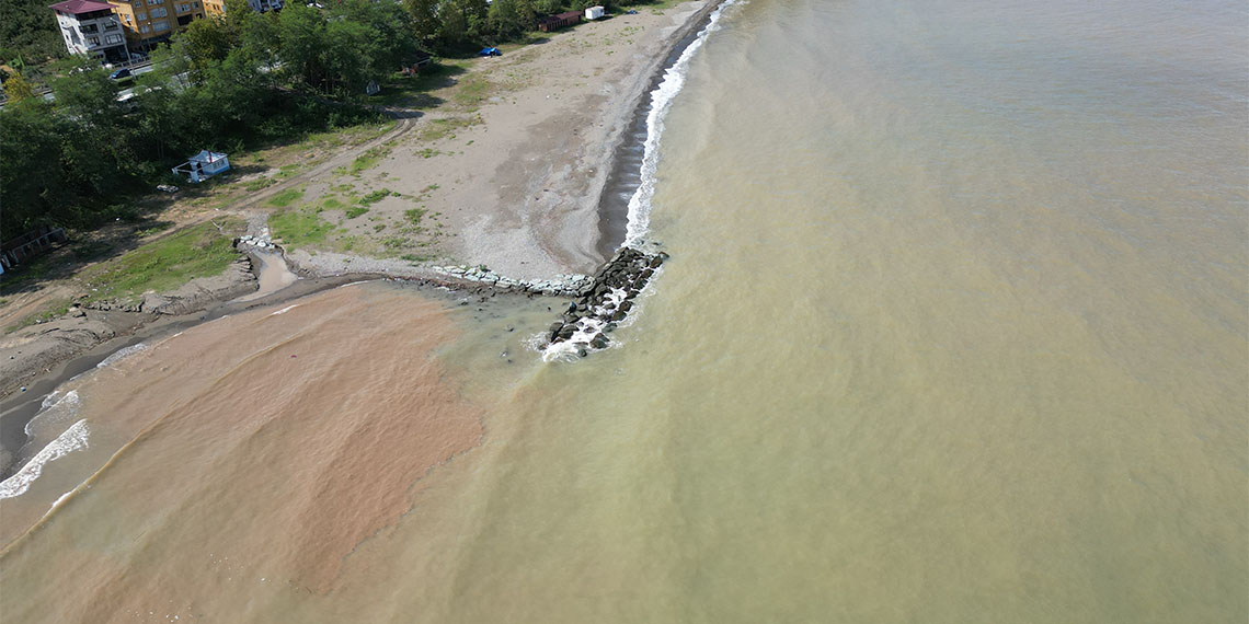 Heyelan sonrası ekiplerin bölgede temizlik çalışması sürerken, derelerden akan çamurlu suyun denizin rengini değiştirdiği görüldü. Sürmene, Araklı ve Arsin ilçelerindeki derelerden akan çamurlu su Karadeniz’in kıyı şeridinde suyun rengini değiştirirken, denizin renginin kahverengiye dönmesi, dronla görüntülendi.