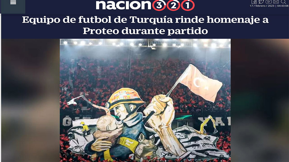 İspanyolca yayın yapan Nacion 321, Trabzonsporluların Proteo’ya gösterdiği koreografili saygı duruşunu okurlarına, “Kurtarma köpeği Proteo sadece tüm Meksikalıların değil, Türklerin de kalbine dokundu” sözleriyle duyurdu.