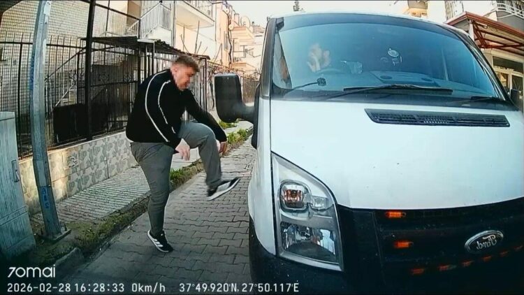 Olay, 28 Şubat’ta saat 16.30 sıralarında Efeler ilçesi Osman Yozgatlı Mahallesi Batı Çevre Bulvarı Tellidede Mezarlığı mevkiinde meydana geldi. Otomobil sürücüsü Emirhan S., iddiaya göre, ara sokakta bekleme yapan kamyonetin arkasında durdu. İki araç sürücüsü arasında yol verme meselesinden tartışma çıktı. Emirhan S., kamyonet sürücüsünün kendisine el-kol hareketi yaptığını ileri sürüp, öfkeyle aracından indi. Kamyonetin camını yumruklayıp, kapısını açmaya çalışan Emirhan S., aracın aynasını kırmaya çalıştı. O anlar, başka bir aracın güvenlik kamerasına anbean yansıdı.
